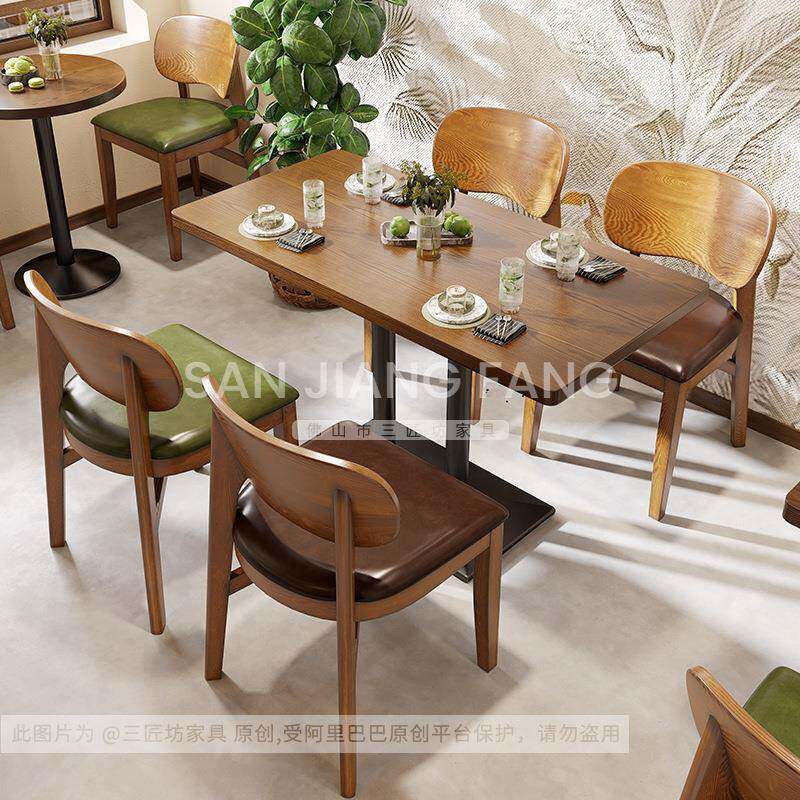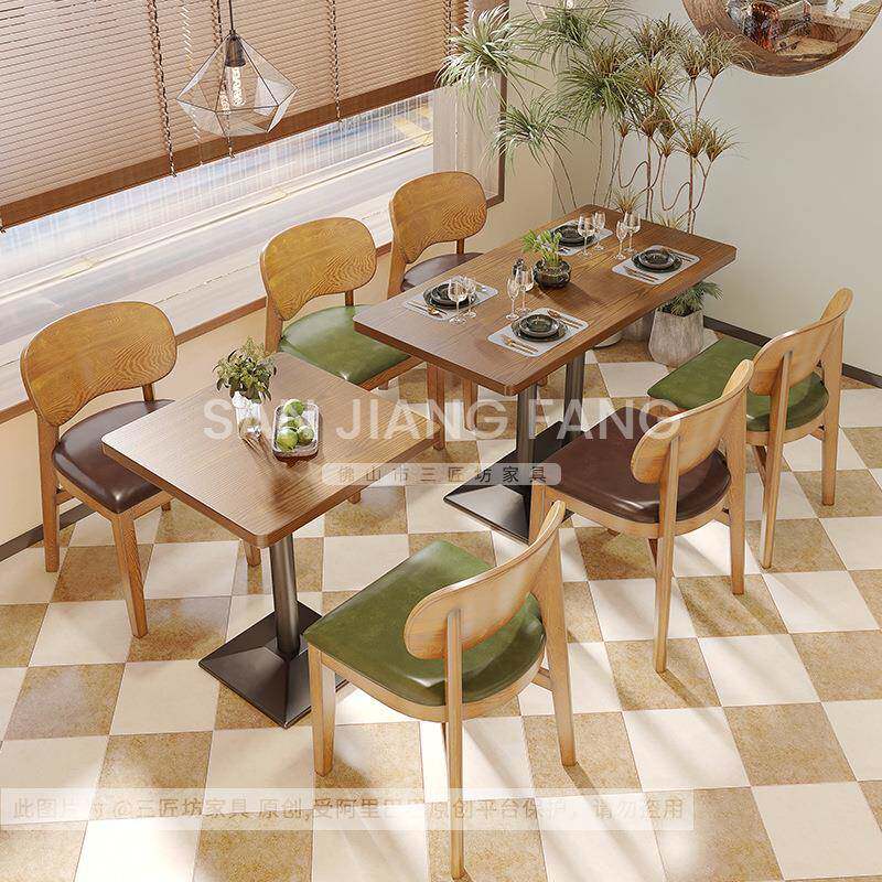 复古咖啡厅桌椅组合小吃奶茶店面馆小桌子西餐厅实木餐椅餐饮家具