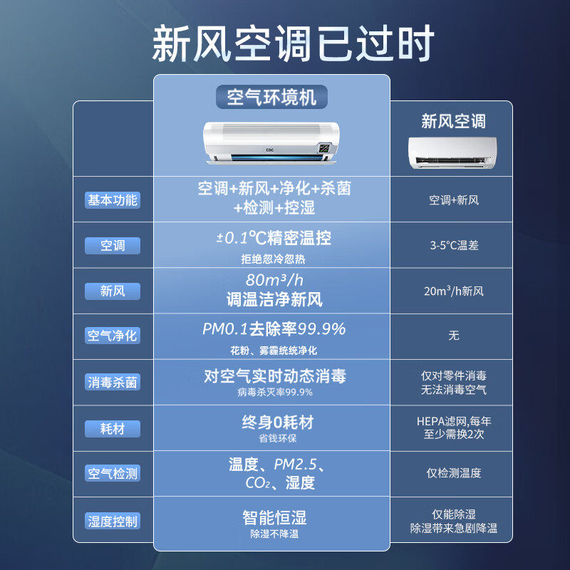 【补贴20%】EBC空气环境机新风空调除甲醛净化大1匹消毒儿童健康