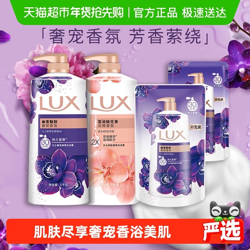 【下拉享补贴】力士持久留香精油香氛幽莲+桃花沐浴露家庭装2600g