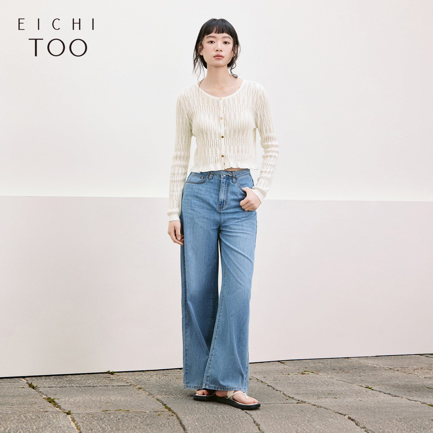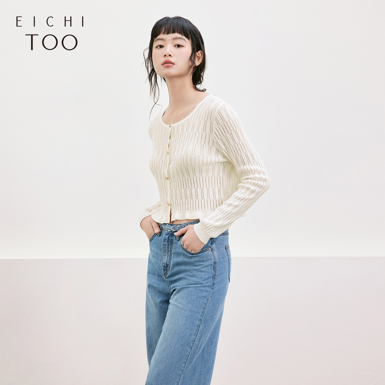 爱居兔白色镂空修身针织开衫女夏季新款肌理感百搭显瘦上衣