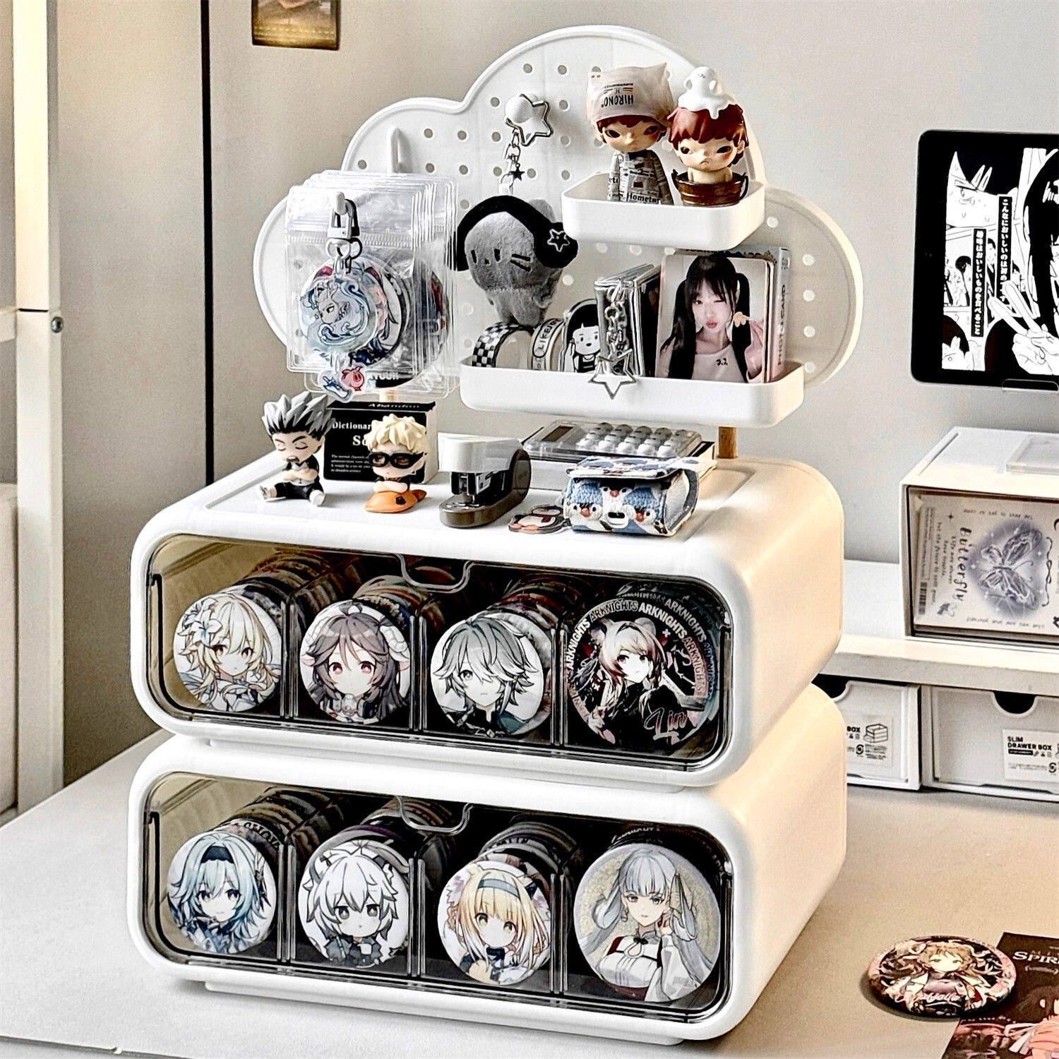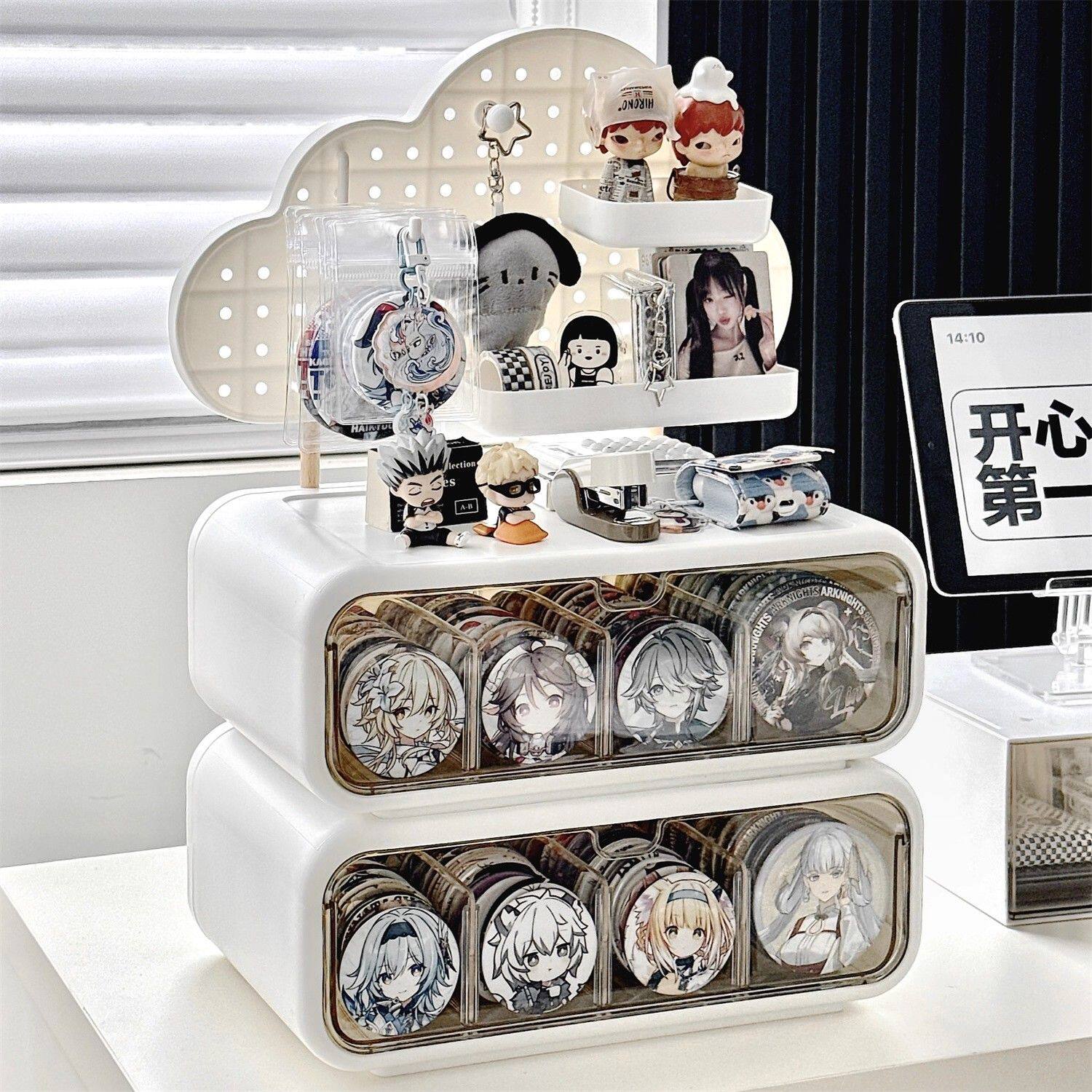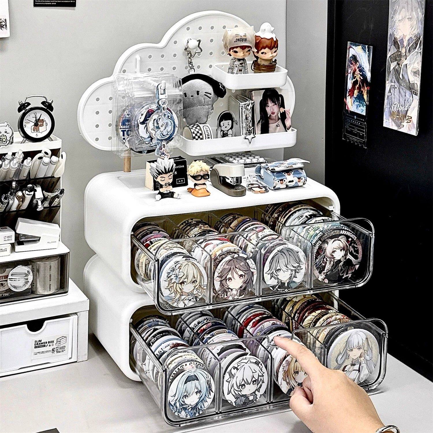 洞洞板吧唧收纳盒抽屉分隔防尘桌面谷子展示架周边卡片挂件小摆件
