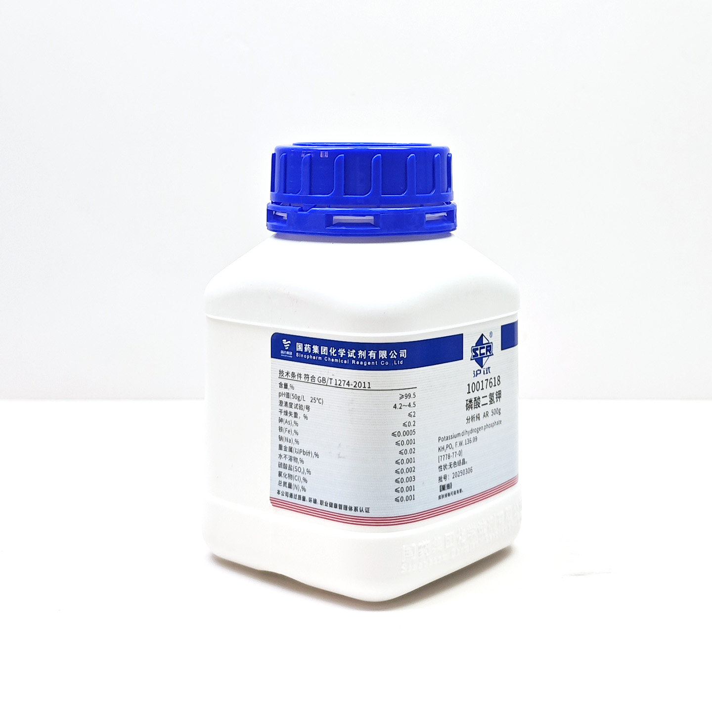 国药试剂 磷酸二氢钾AR GR 沪试500g 无水 分析纯 优级纯化学试剂