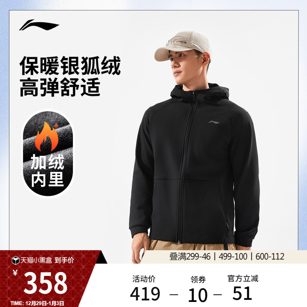 李宁风衣男新款健身跑步连帽开衫长袖连帽夹克外套上衣运动防风服