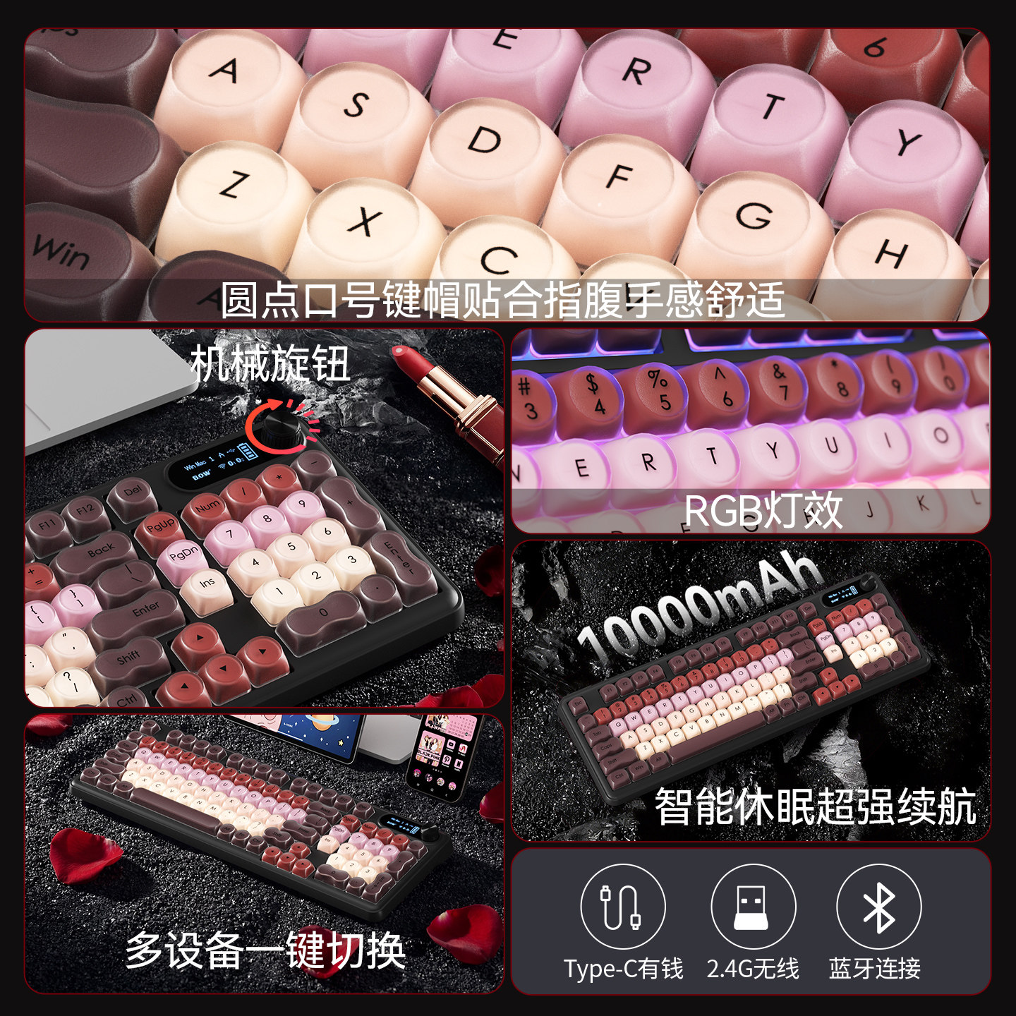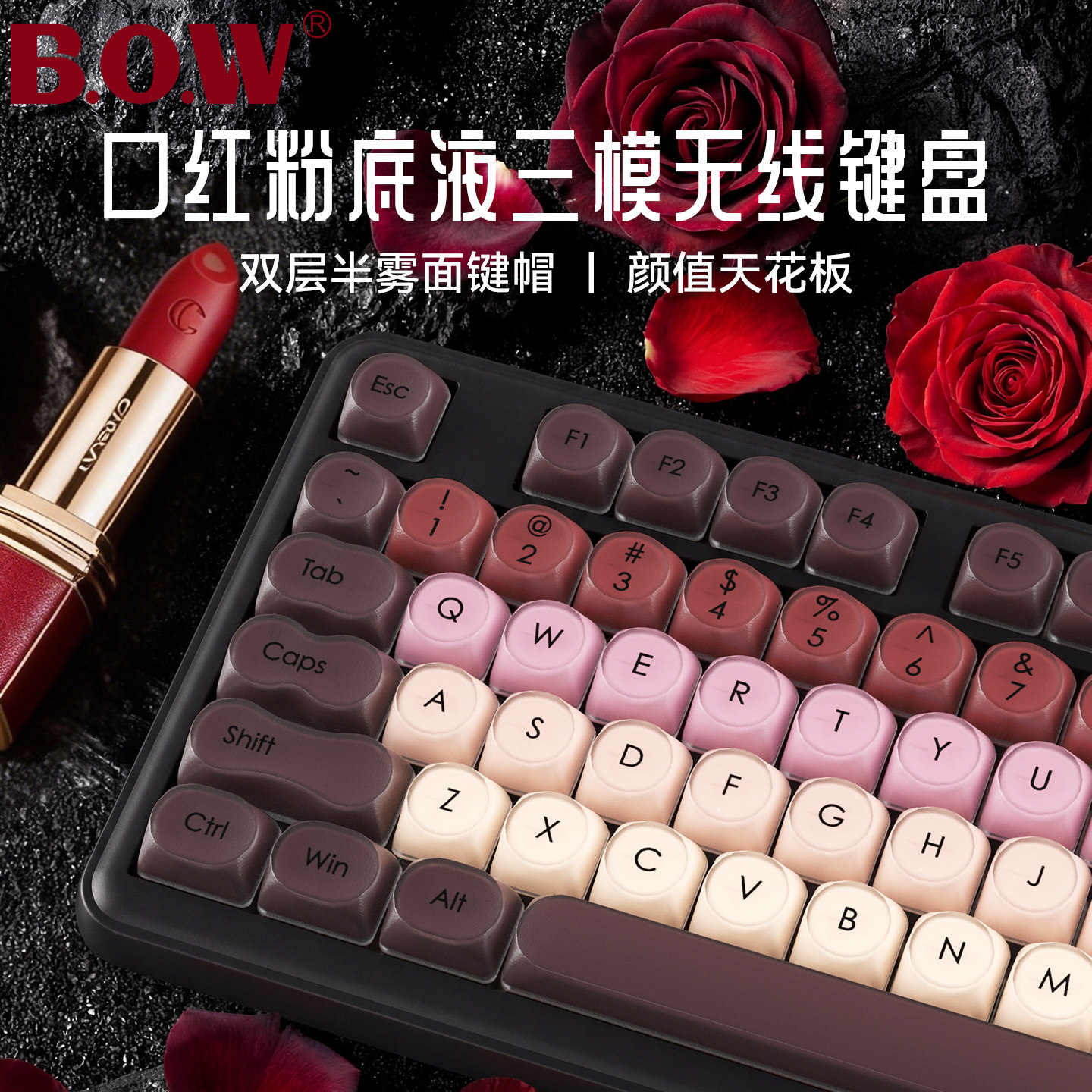 BOW 粉底液无线蓝牙键盘机械手感可爱女生游戏电竞有线三模键鼠