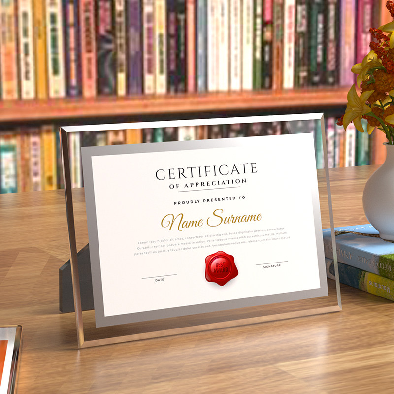 水晶玻璃荣誉证书a4奖状结业获奖授权书聘书外壳任命证件书企业优秀员工毕业颁奖裱框收藏相框架定制捐赠打印
