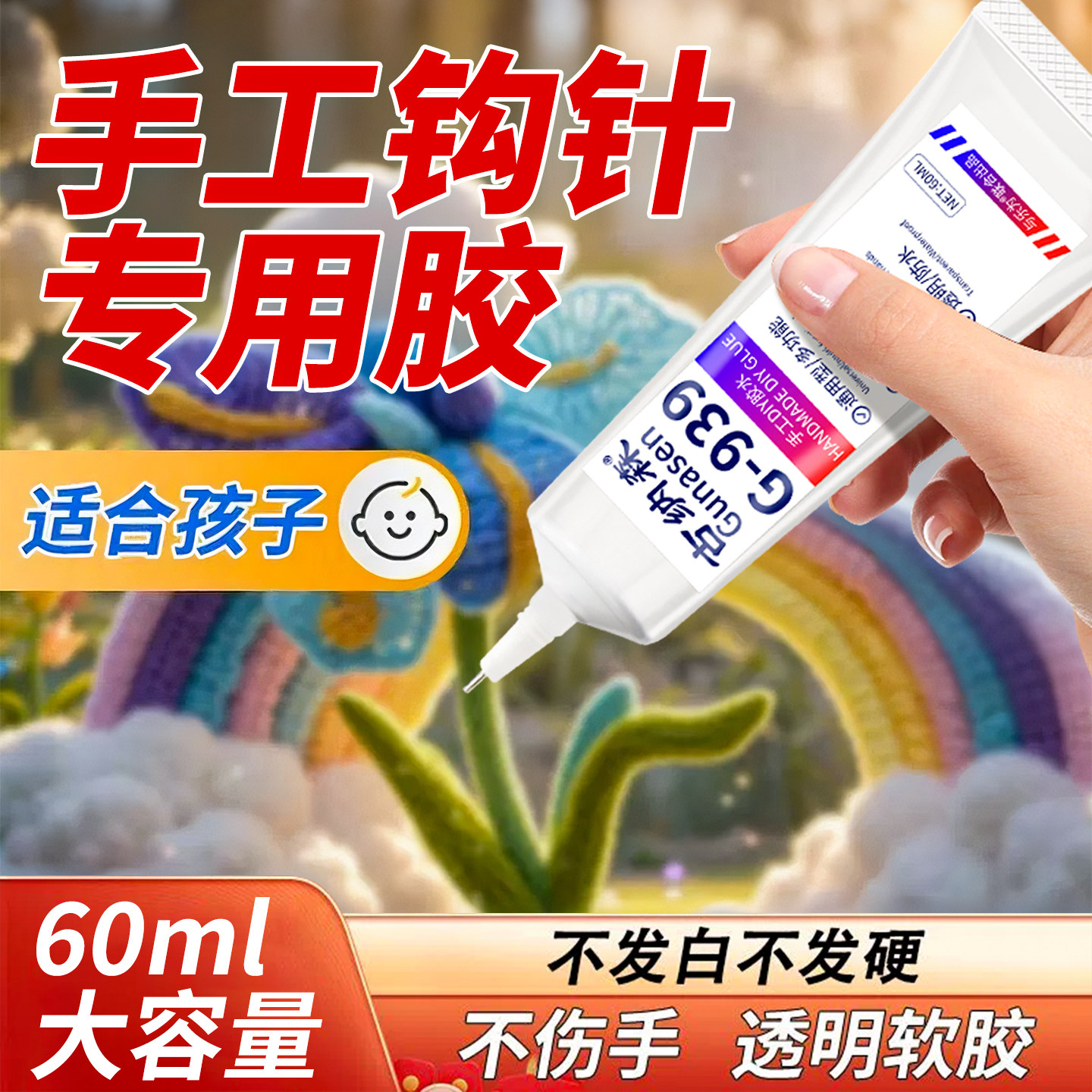 钩织胶水粘微钩不织布织物布娃娃玩偶手工DIY制作酒精胶儿童用透明软性扭扭棒干花布艺掐丝珐琅毛线钩织胶水