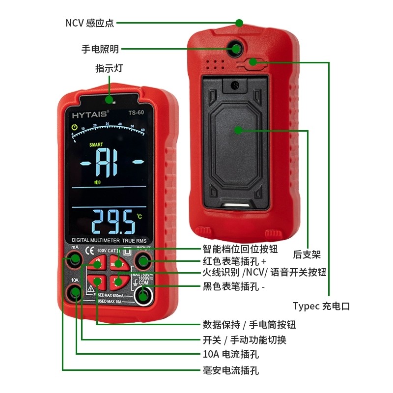 智能语音播报万用表TS60精度彩屏充电万用表全自动识