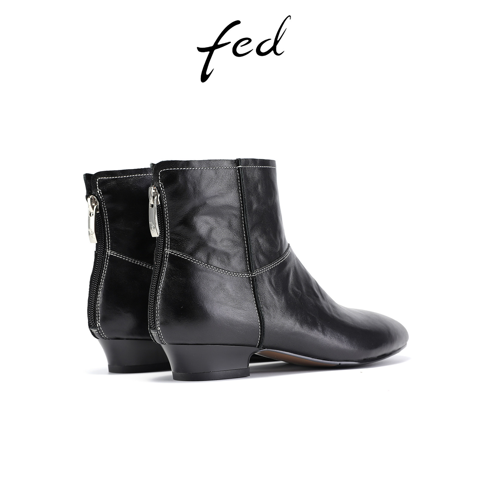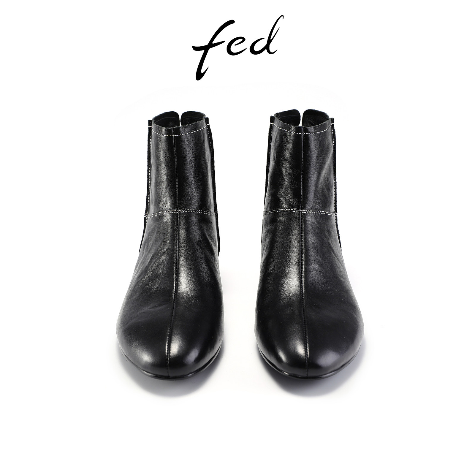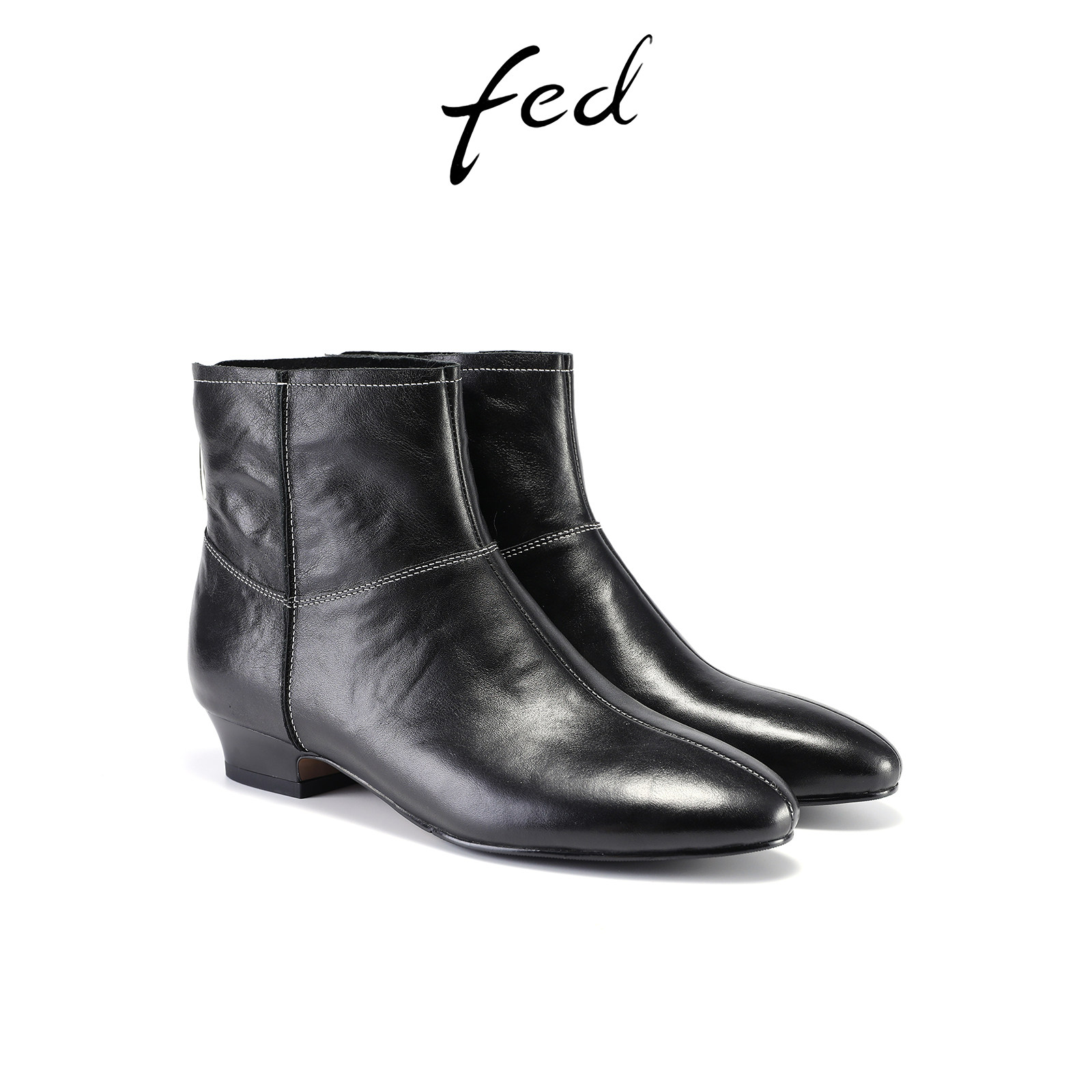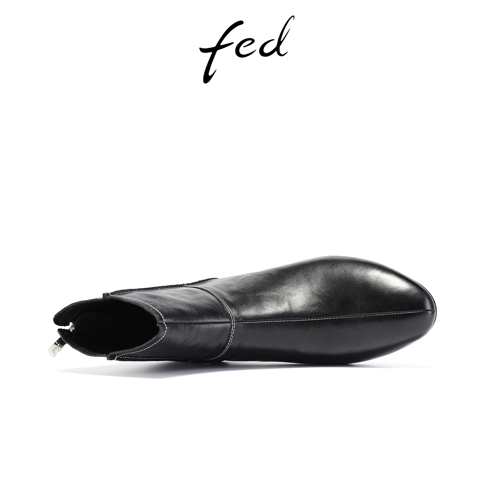 fed粗跟时装靴冬季新款女靴黑色短靴通勤气质真皮靴女S1009-CA015