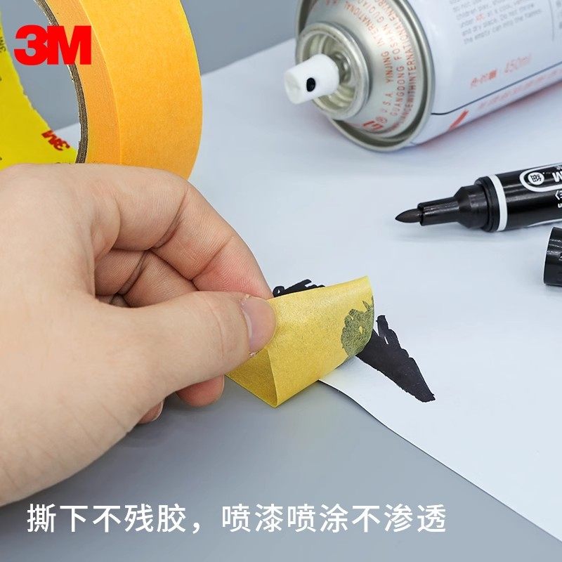 正品3M244美纹纸胶带 黄色无痕耐高温胶带 模型遮盖 汽车喷漆遮蔽