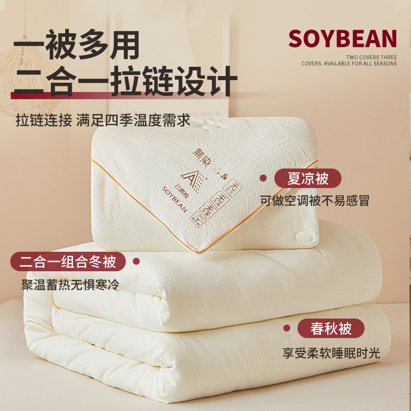 无印良品大豆纤维被子被芯子母被二合一拉链款四季通用春秋被冬被