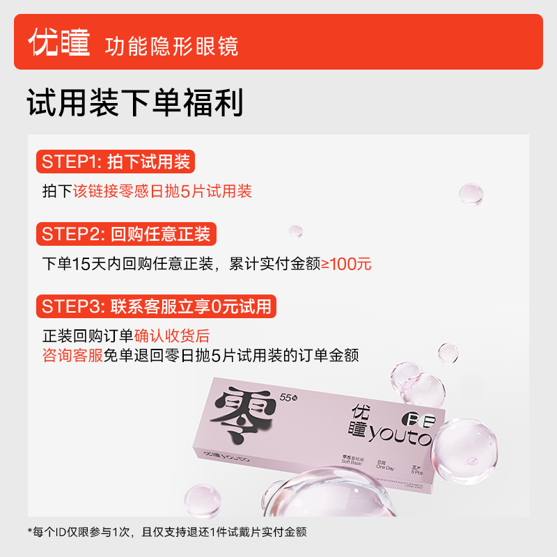 【氧瞳试戴节】5片装优瞳隐形近视眼镜日抛零感55%含水