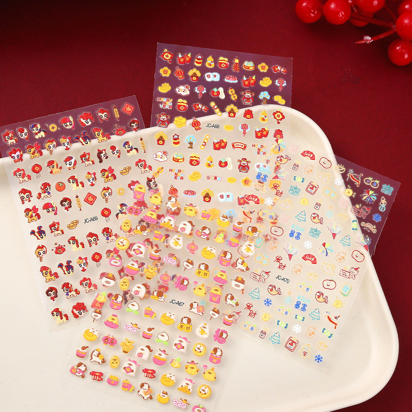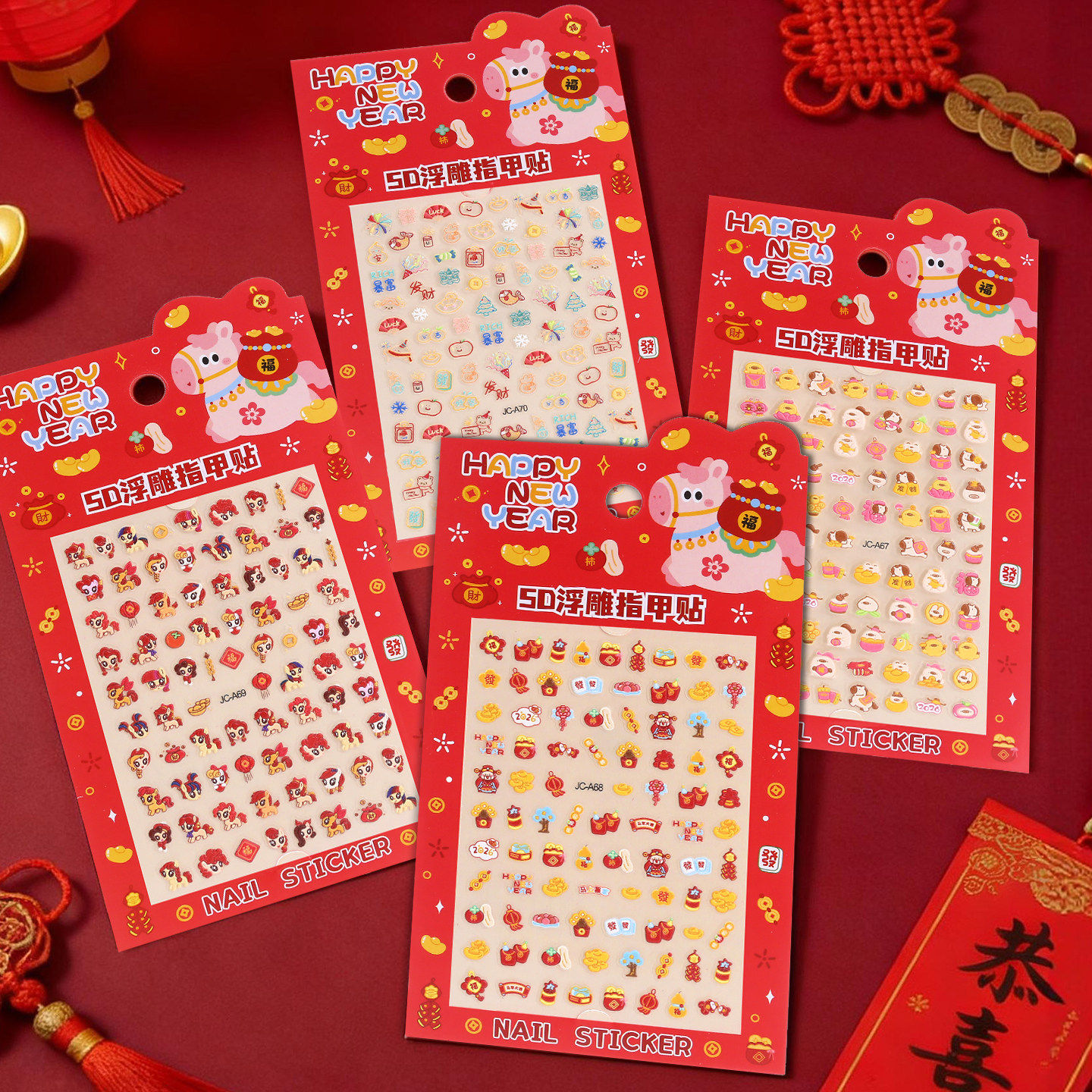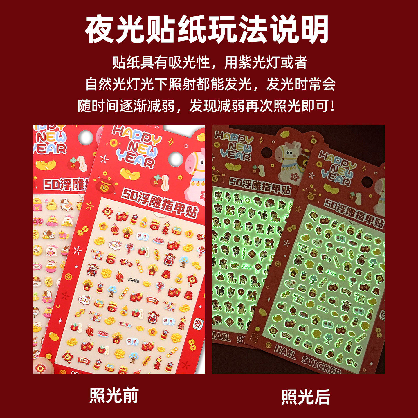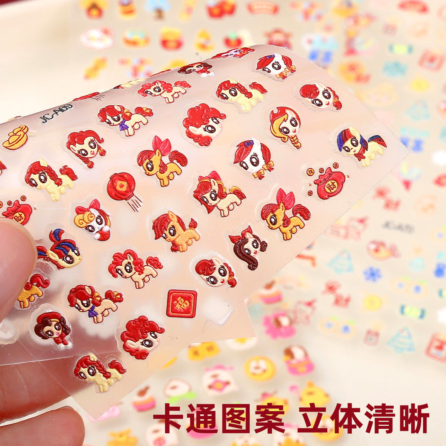2026儿童新年迷你5D浮雕夜光指甲贴女孩马年卡通可爱美甲diy装饰手工贴立体