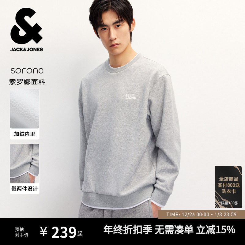 【加绒】杰克琼斯男装2025年秋季新款宽松假两件卫衣外套字母刺绣