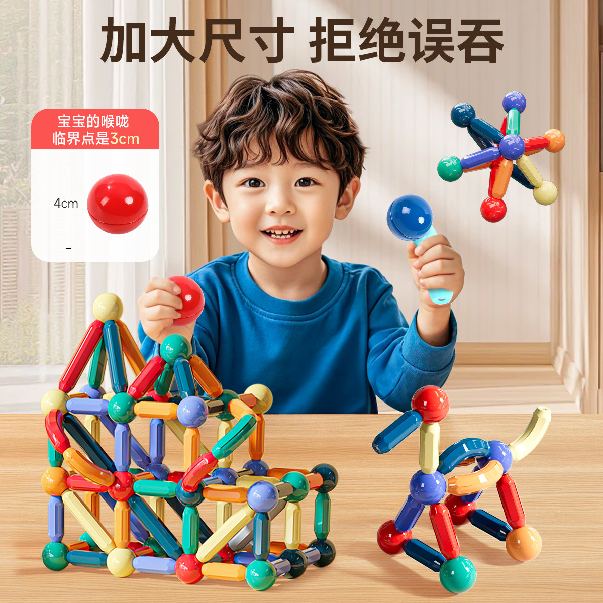 儿童百变强磁力棒片益智拼装磁铁积木思维训练玩具3到6岁磁吸吸力