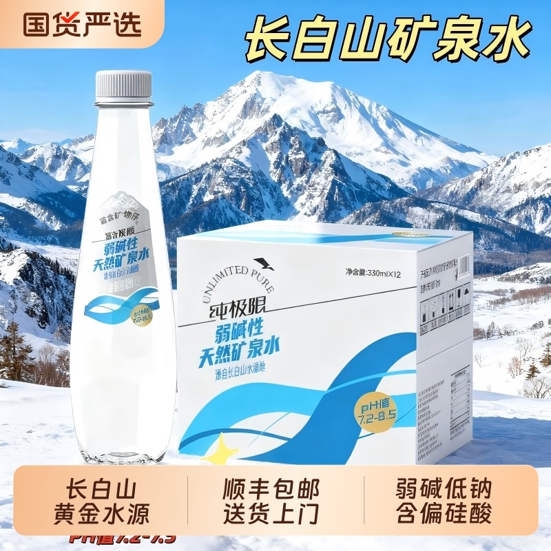 纯极限长白山天然矿泉水弱碱性整箱瓶装雪山水高端饮用水商务瓶装