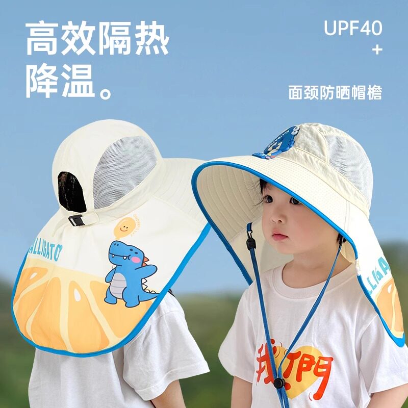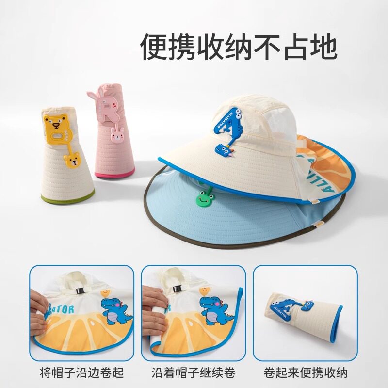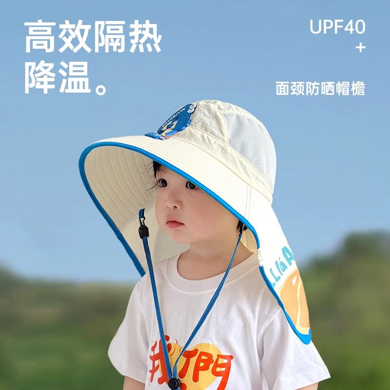 儿童防晒帽夏季男宝宝遮阳帽男童帽子女童沙滩帽男孩太阳帽大帽檐