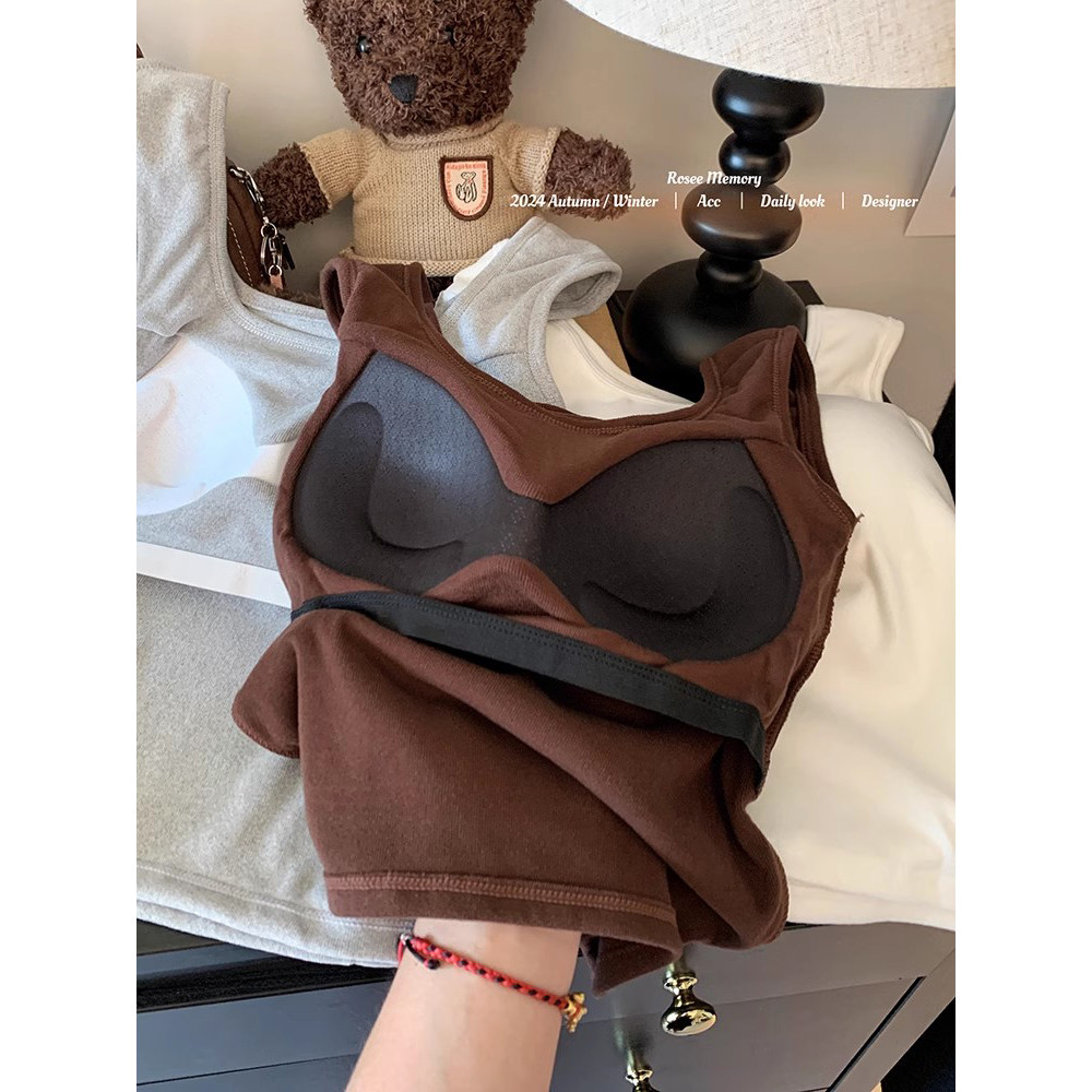 石墨烯保暖背心女秋冬加绒加厚发热德绒带胸垫一体固定杯贴身内衣