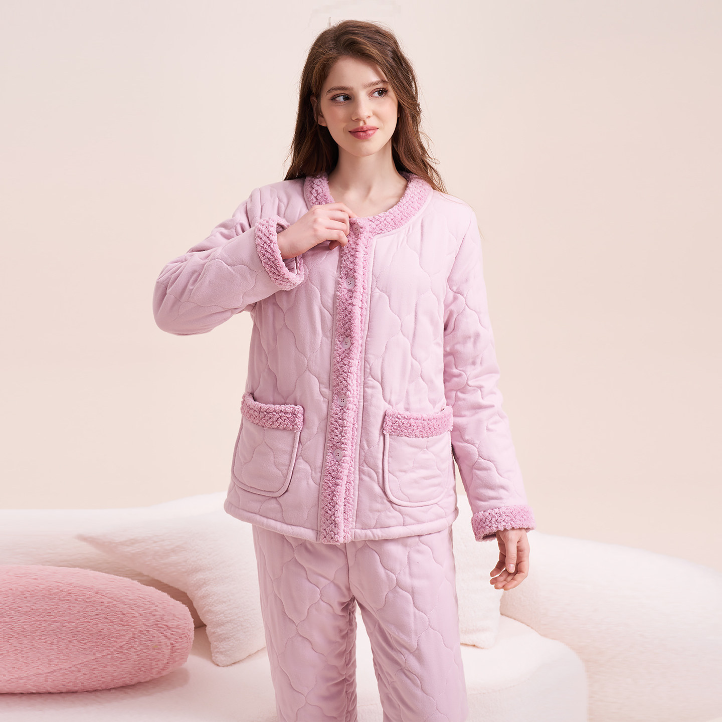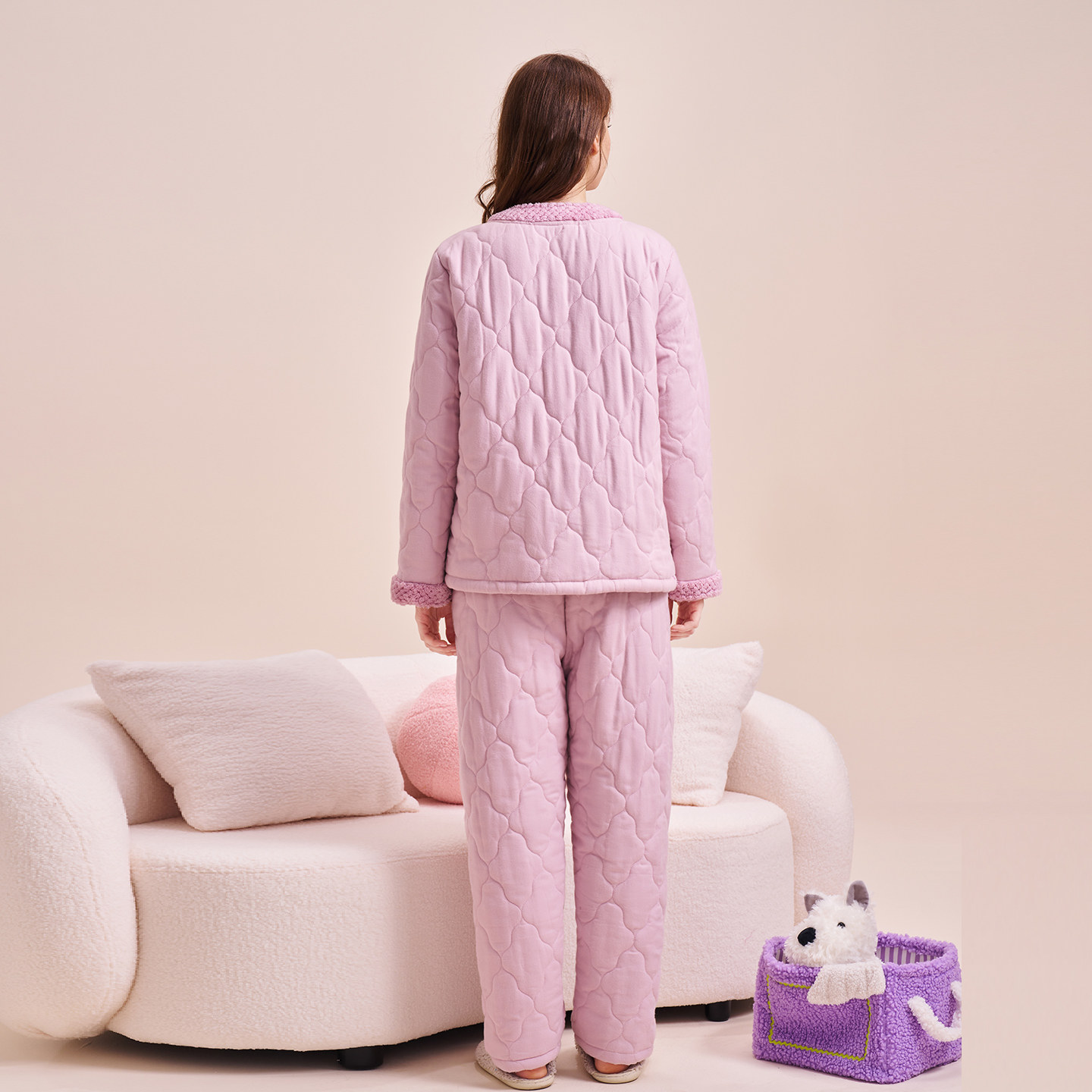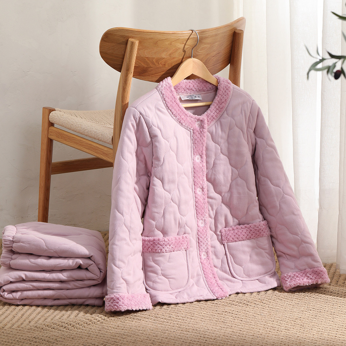 美标秋冬新款三层加厚夹棉睡衣套装女小香风可外穿纯棉全棉家居服