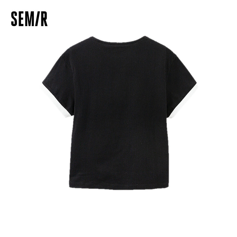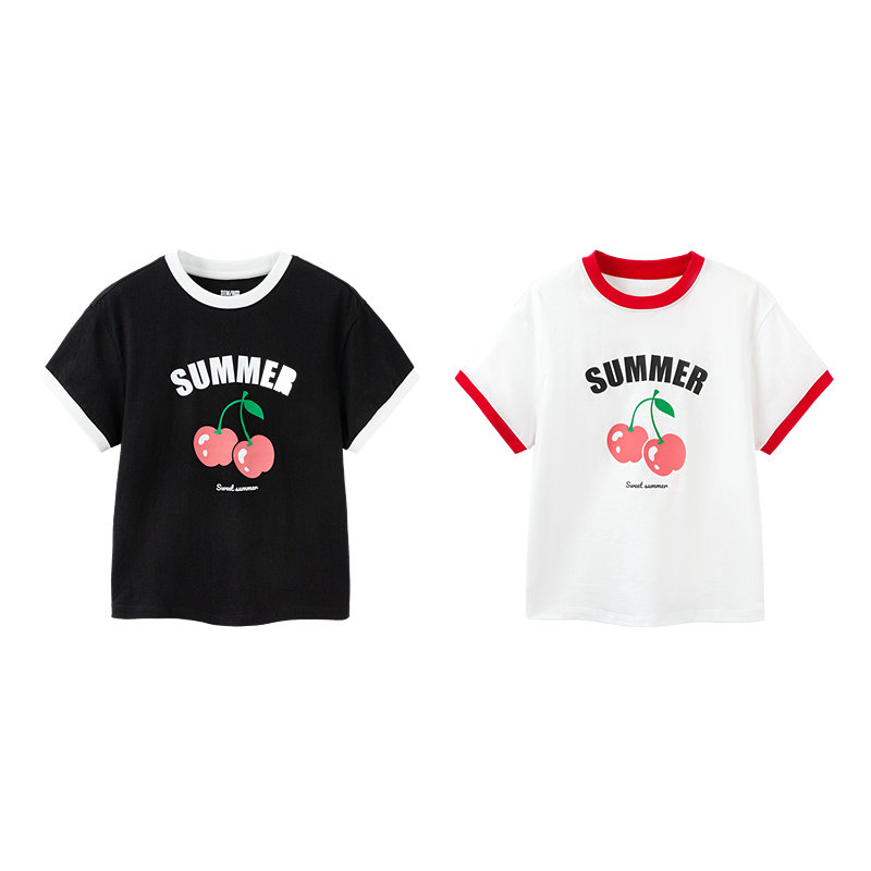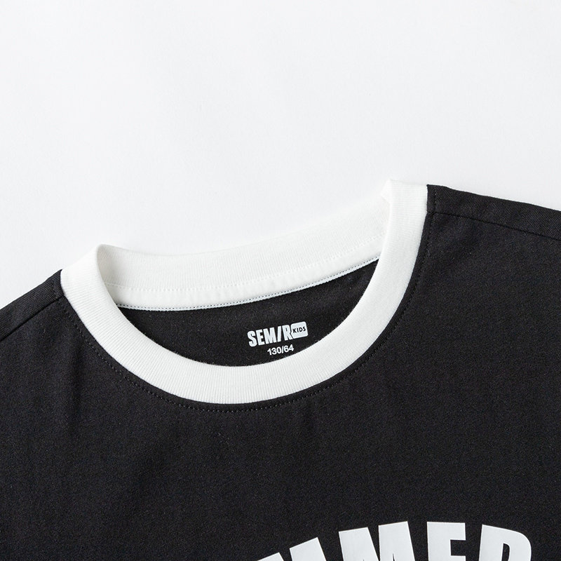 森马儿童短袖T恤2024年新款时尚撞色甜酷印花亲子装夏季女童上衣