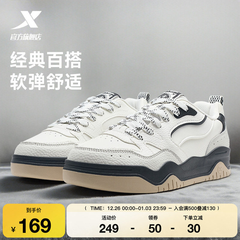 特步新春系列|皓白3板鞋男鞋2025冬季新款男款情侣运动休闲鞋女