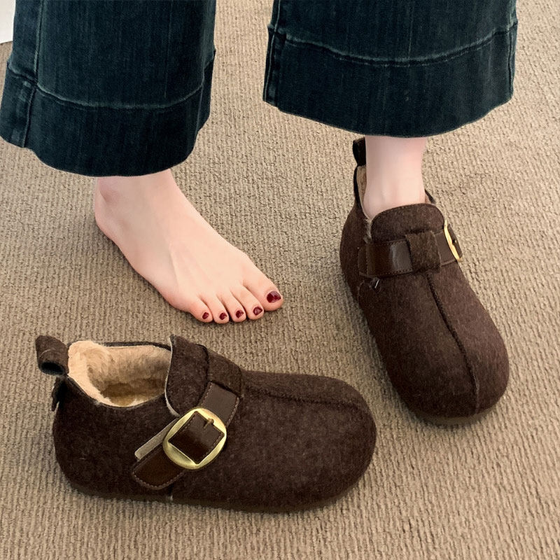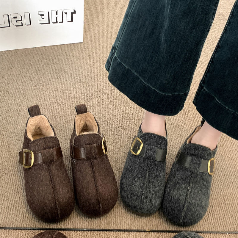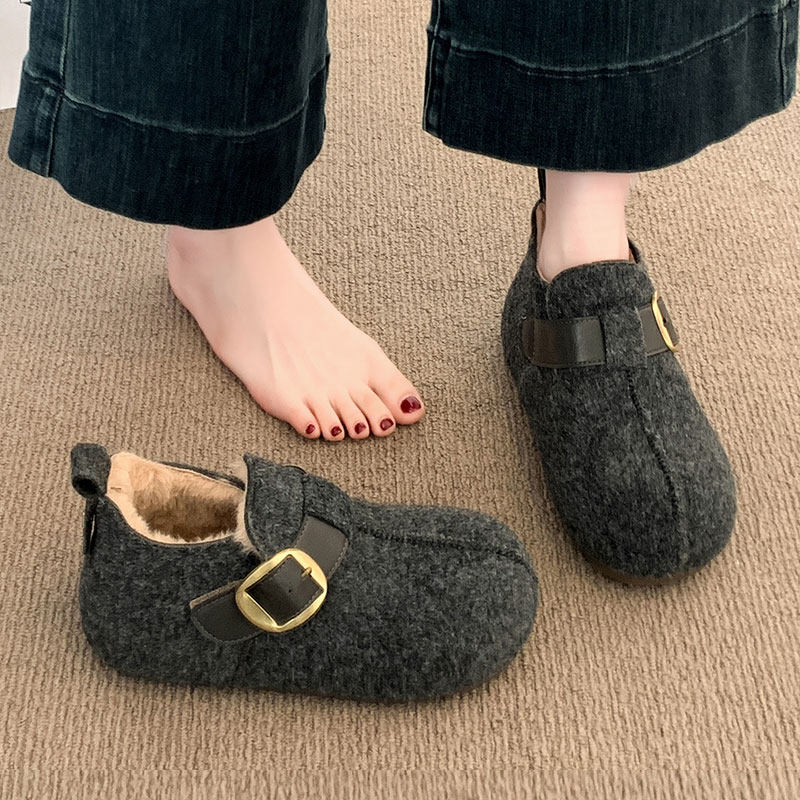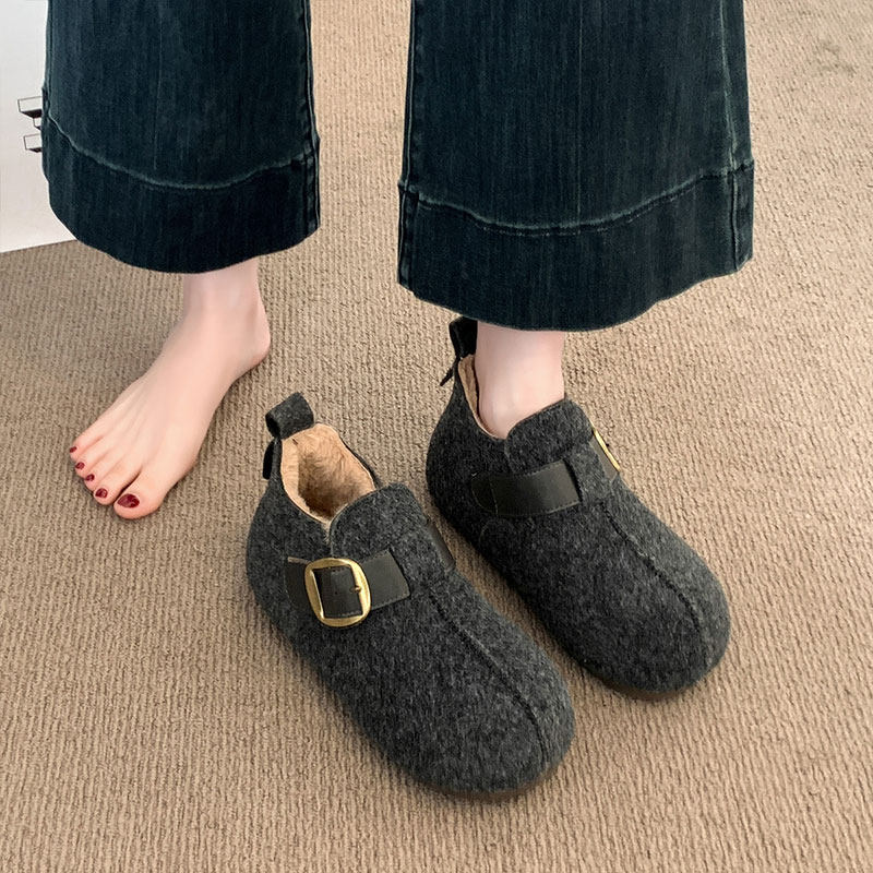 厚底灰色加绒勃肯鞋女鞋2025新款爆款秋冬毛呢鞋软底保暖博肯棉鞋