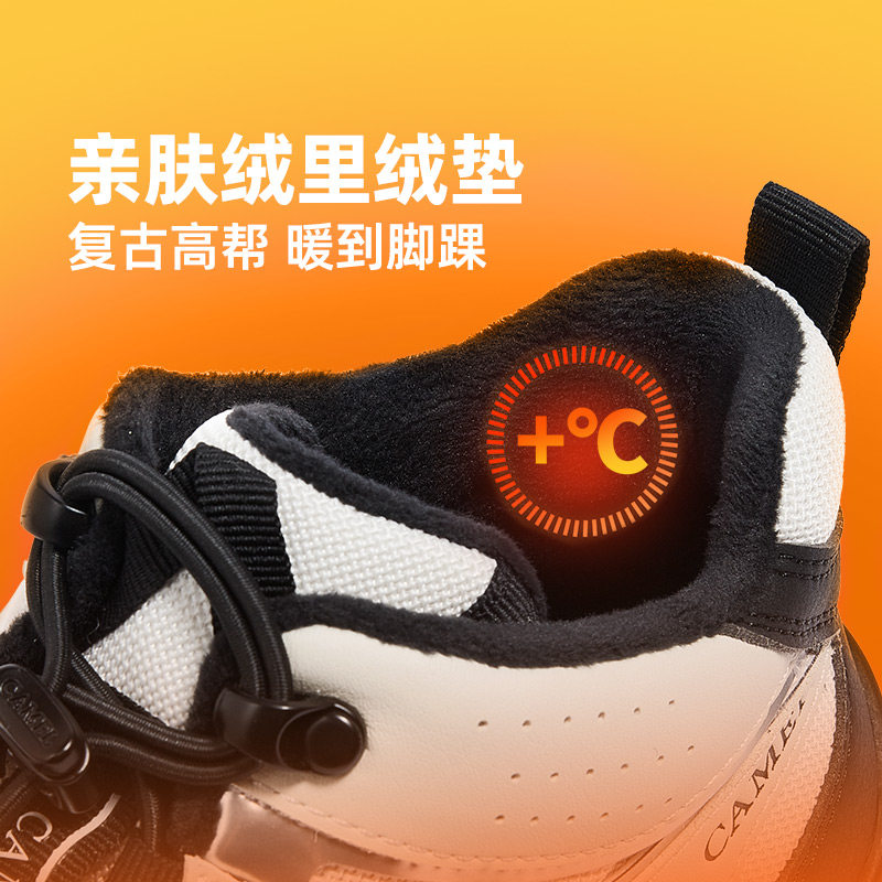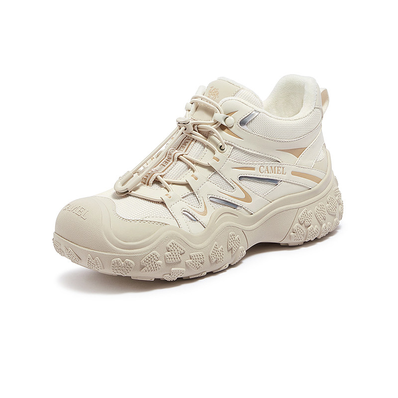 骆驼女鞋秋冬厚底高帮鞋女户外运动登山鞋老爹鞋保暖棉鞋