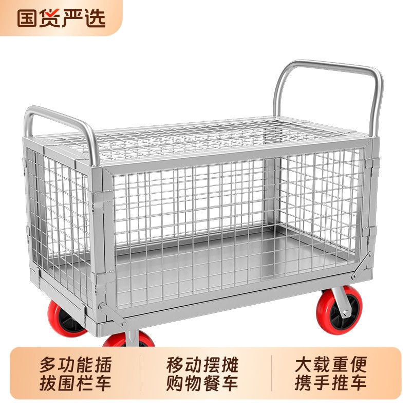 围栏车折叠拖车网格物流超市购物中转推货车平板车摆摊多用手推车