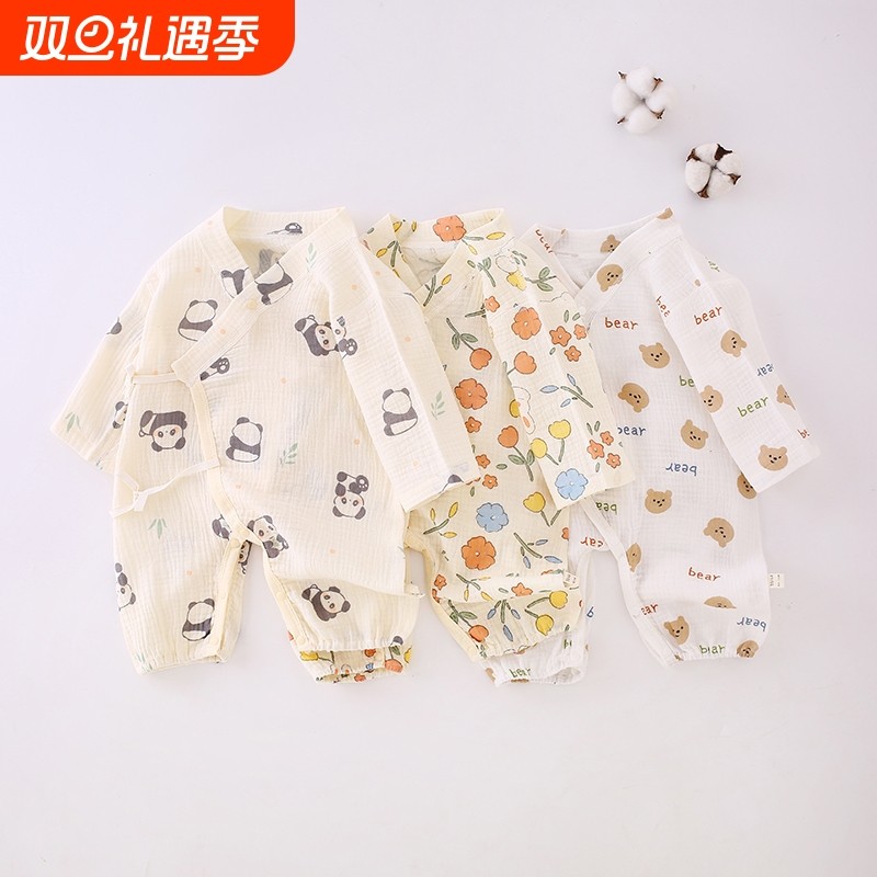 宝宝衣服婴儿四季长袖连体衣春夏薄款新生儿双层纱布纯棉哈衣一件