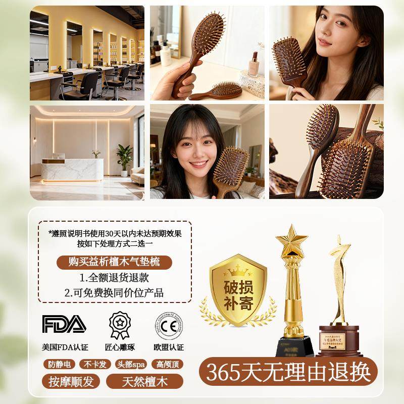 檀木气垫梳女士家用顺发头部头皮经络按摩梳毛囊便携气囊疏通梳子