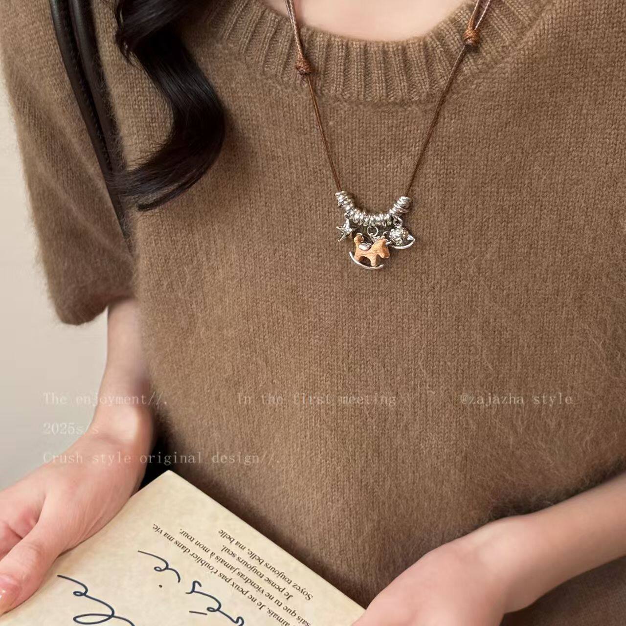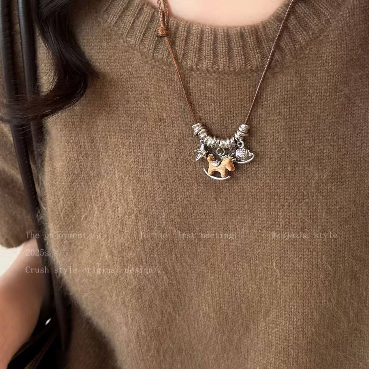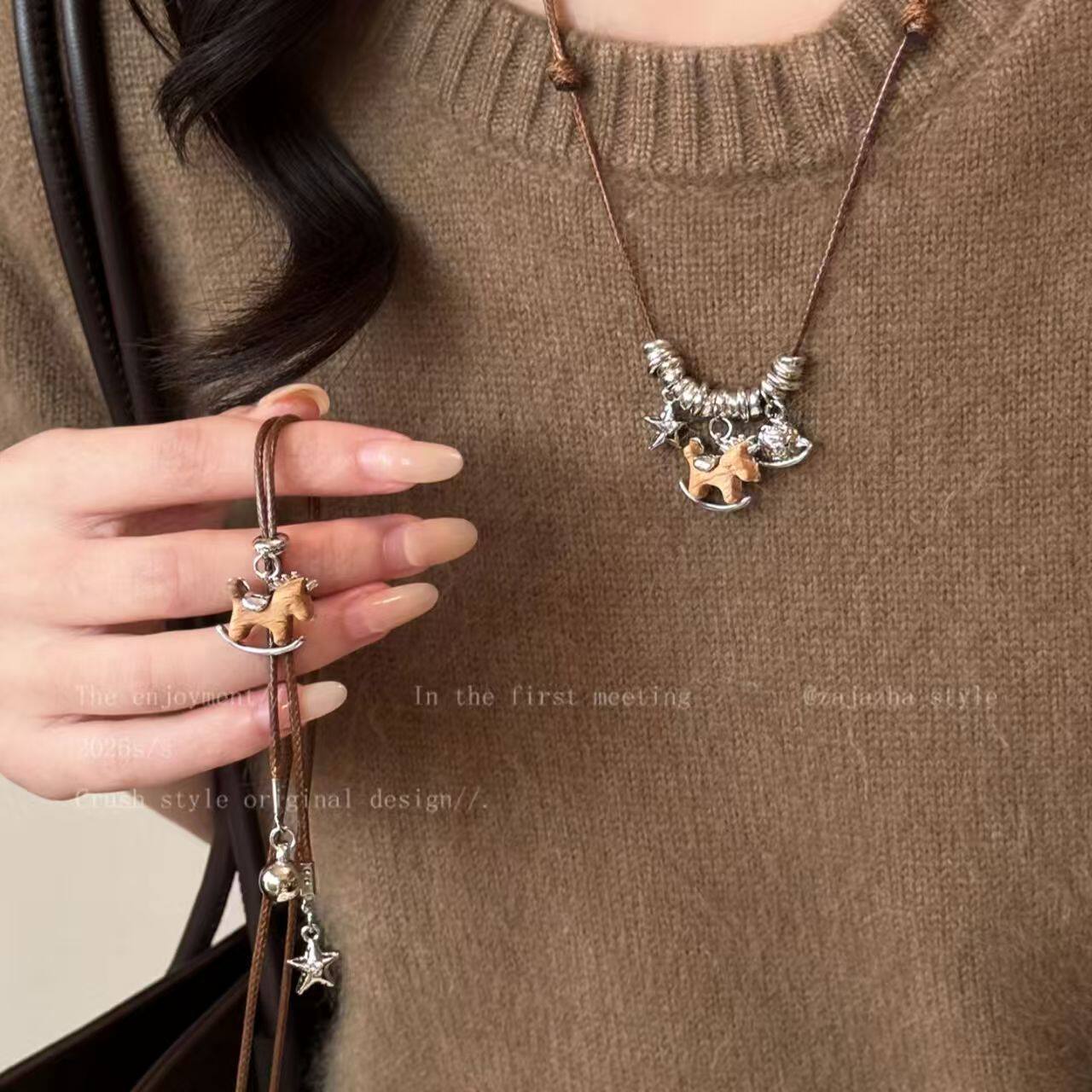 复古小马吊坠项链女2025新款秋冬长毛衣链时尚独特气质本命年配饰