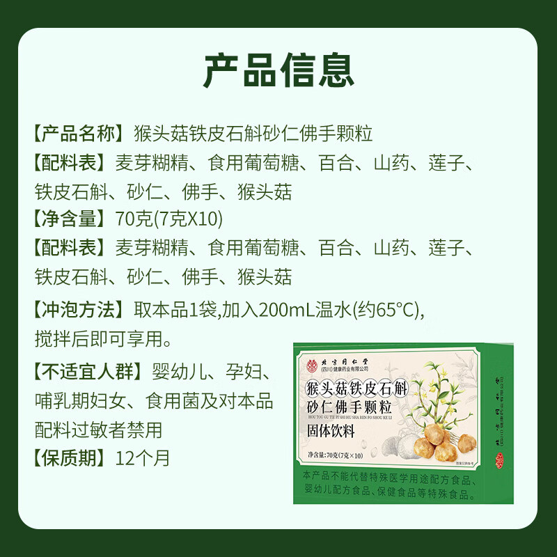 北京同仁堂猴头菇石斛砂仁佛手颗粒养肠胃调理健康官方旗舰店正品
