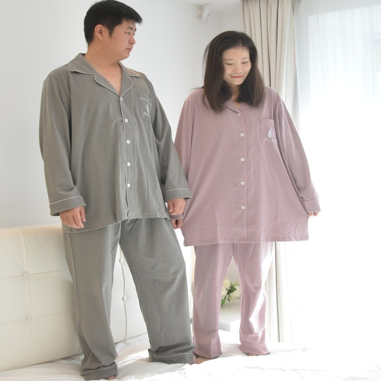 260斤加肥大码加厚全棉情侣睡衣男女春秋胖MM开衫长袖长裤家居服