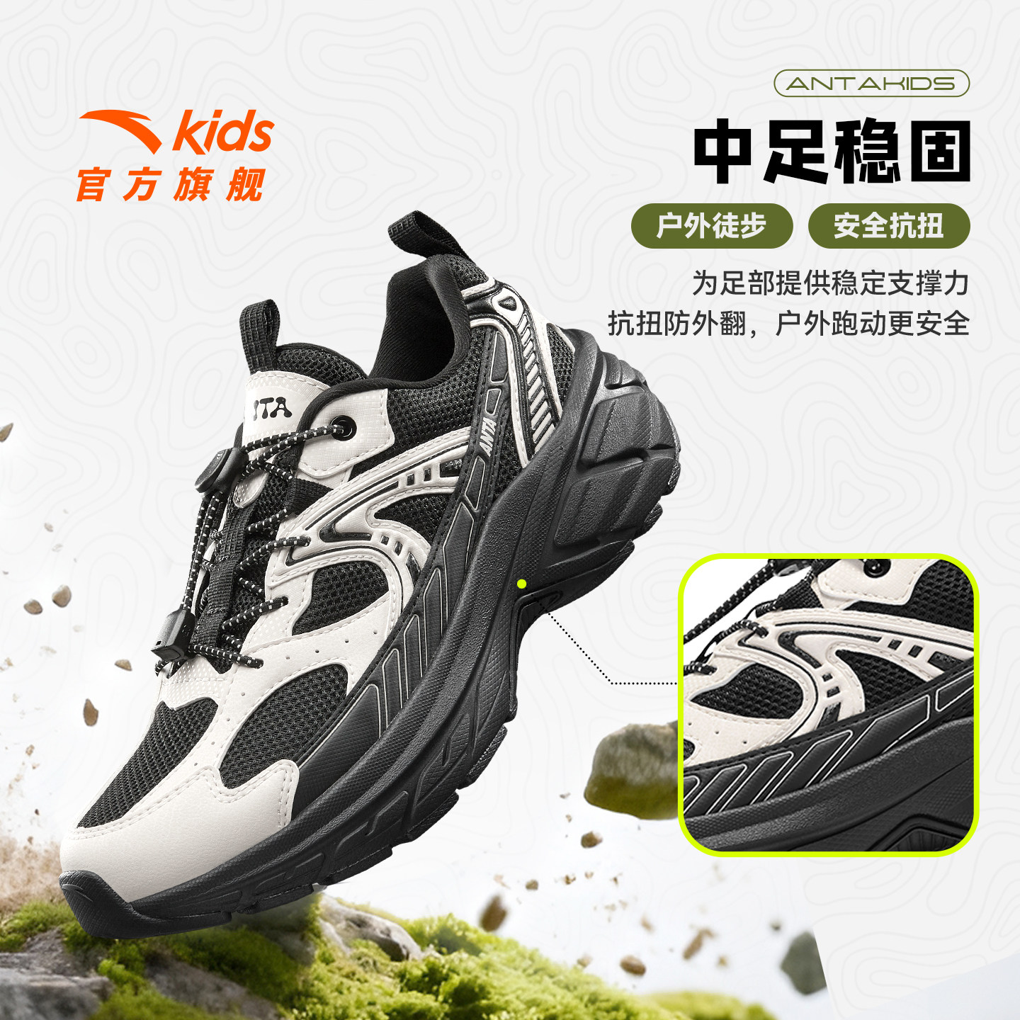 原野丨安踏儿童运动鞋男童鞋2026春季新款户外登山徒步鞋暴走童鞋