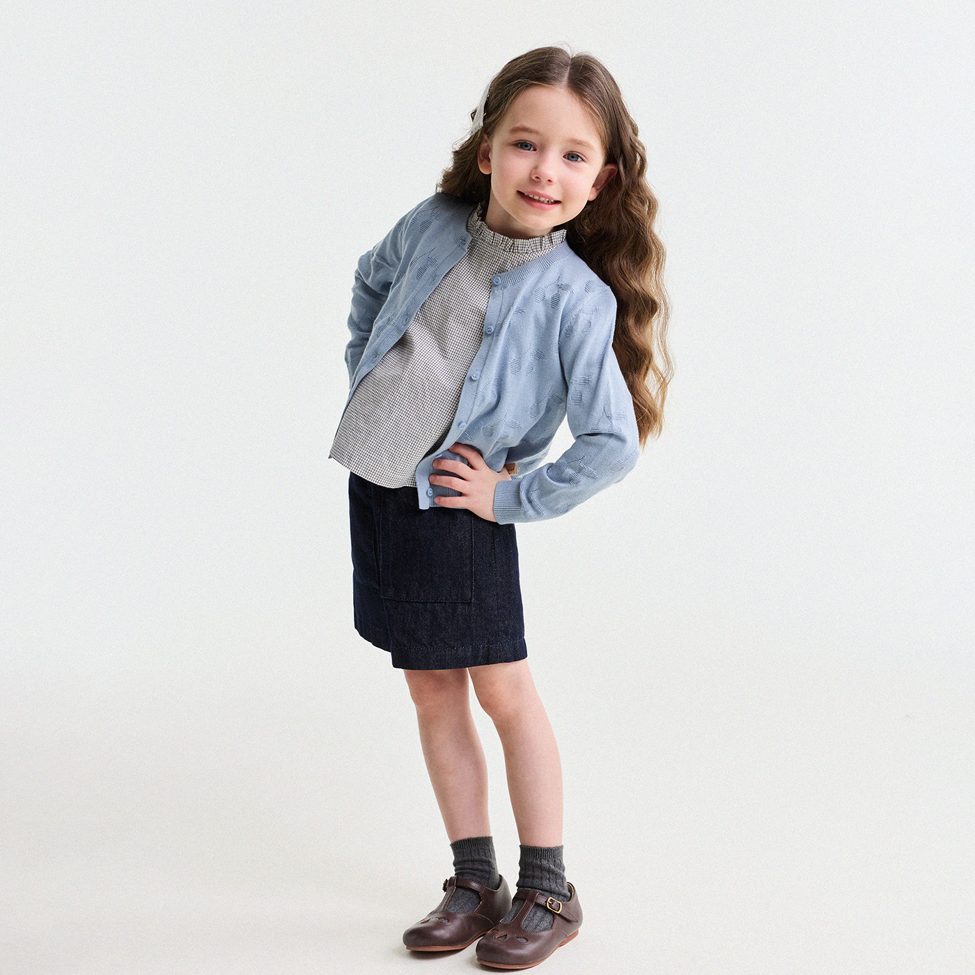 MUCMUKN【万能叠穿】全棉牛仔衬衫学院风绣花小狗百搭男女童26春