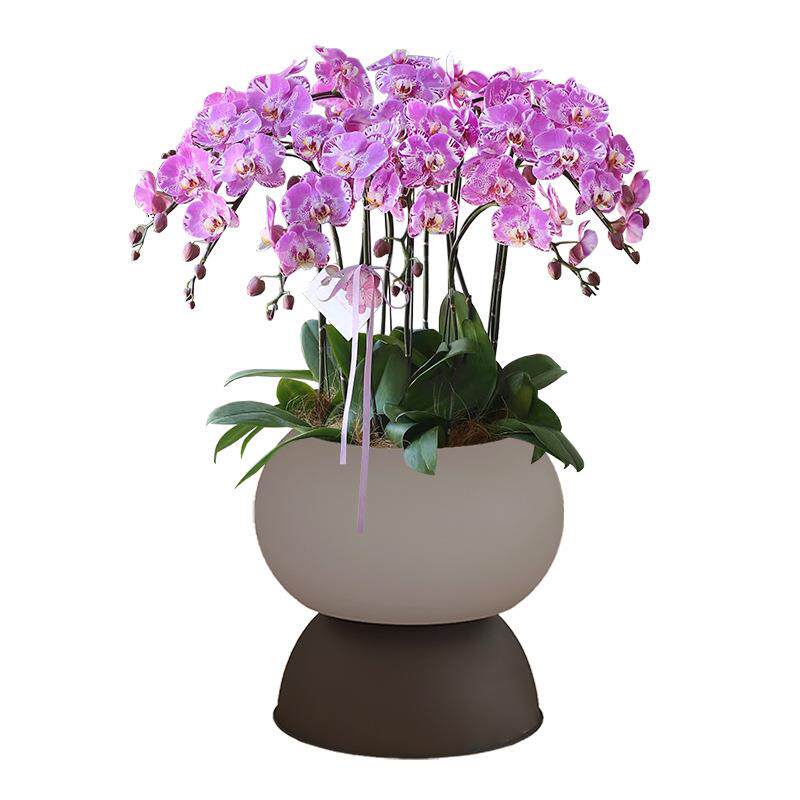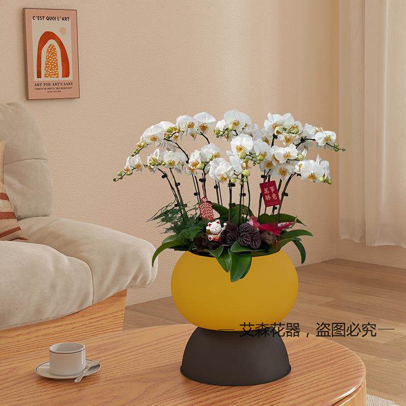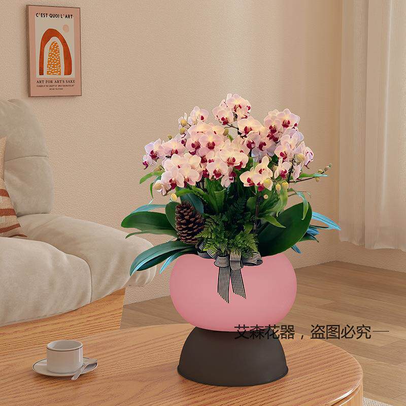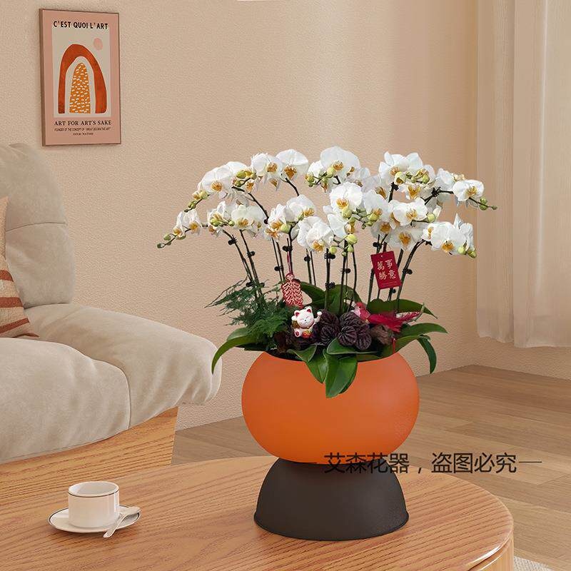 财源滚滚蝴蝶兰盆铁艺花盆花器金属冬青银柳盆器仿真花新中式摆件