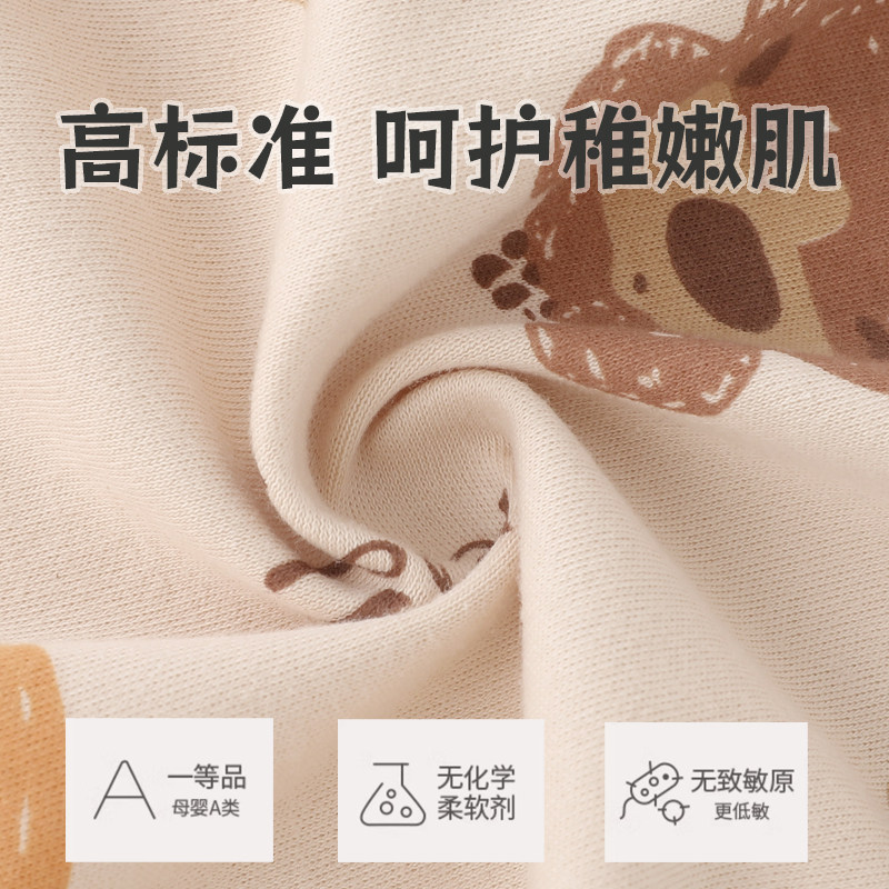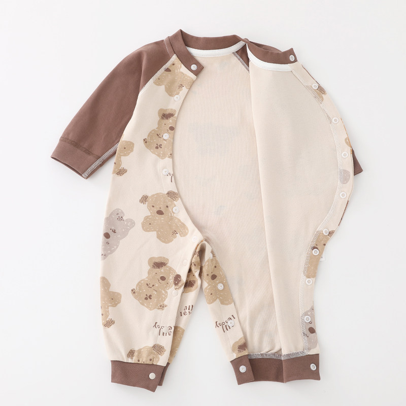 小猪大卫新生儿秋季保暖连体衣男女宝宝卡通印花中开夹棉爬服