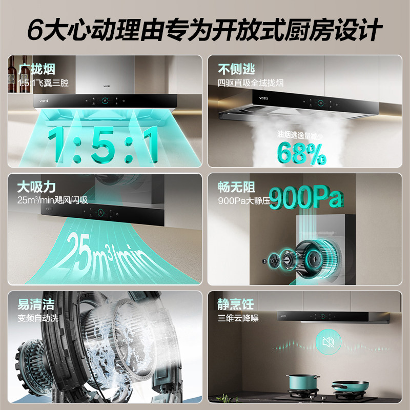 华帝S7抽油烟机大吸力变频自动清洗家用厨房顶吸官方旗舰店正品