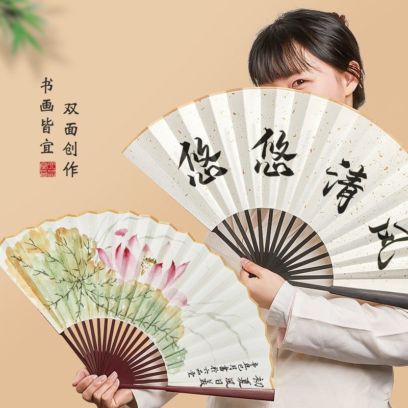 【古风双面宣纸折扇】扇子空白毛笔书法题字绘画扇洒金扇面掌上碑