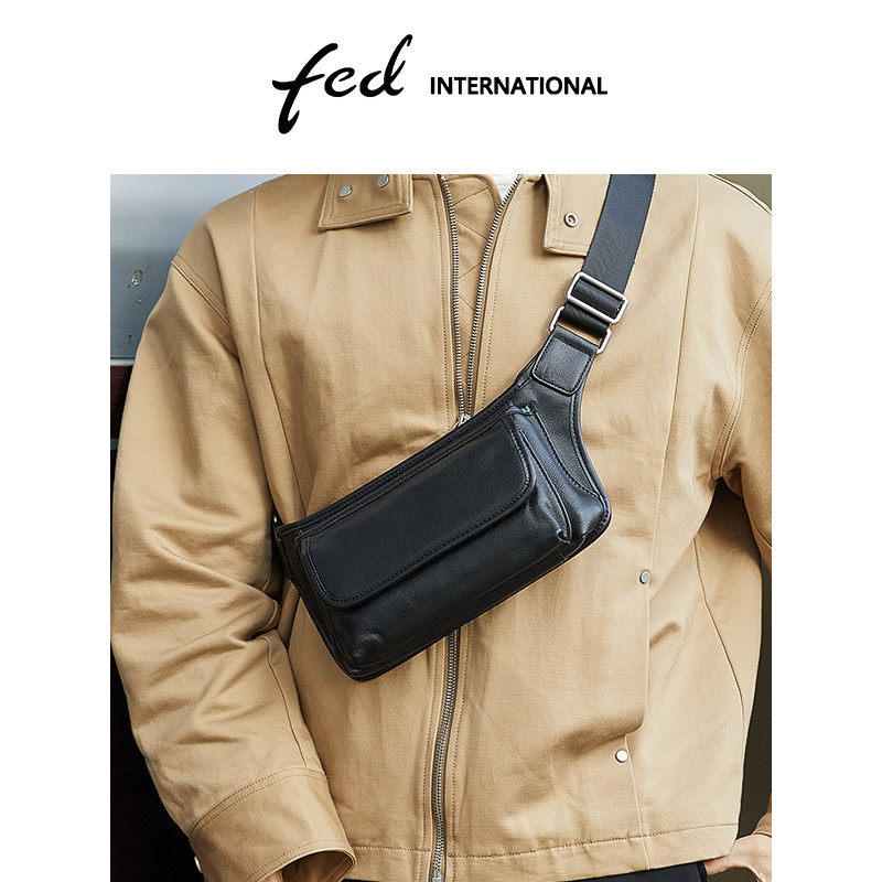 fde头层牛皮真皮男包时尚潮男单肩包胸包手机包斜挎包BFA2013D