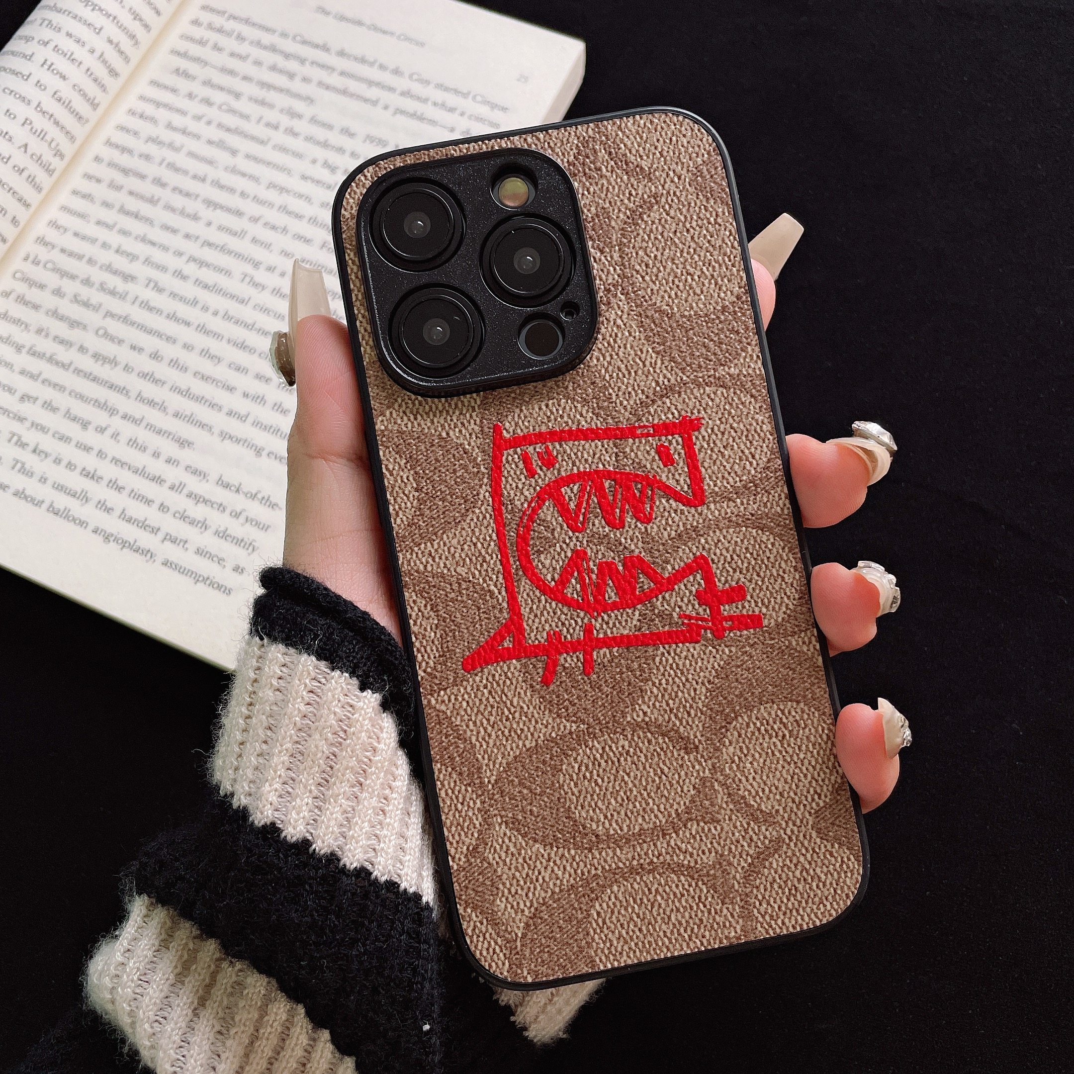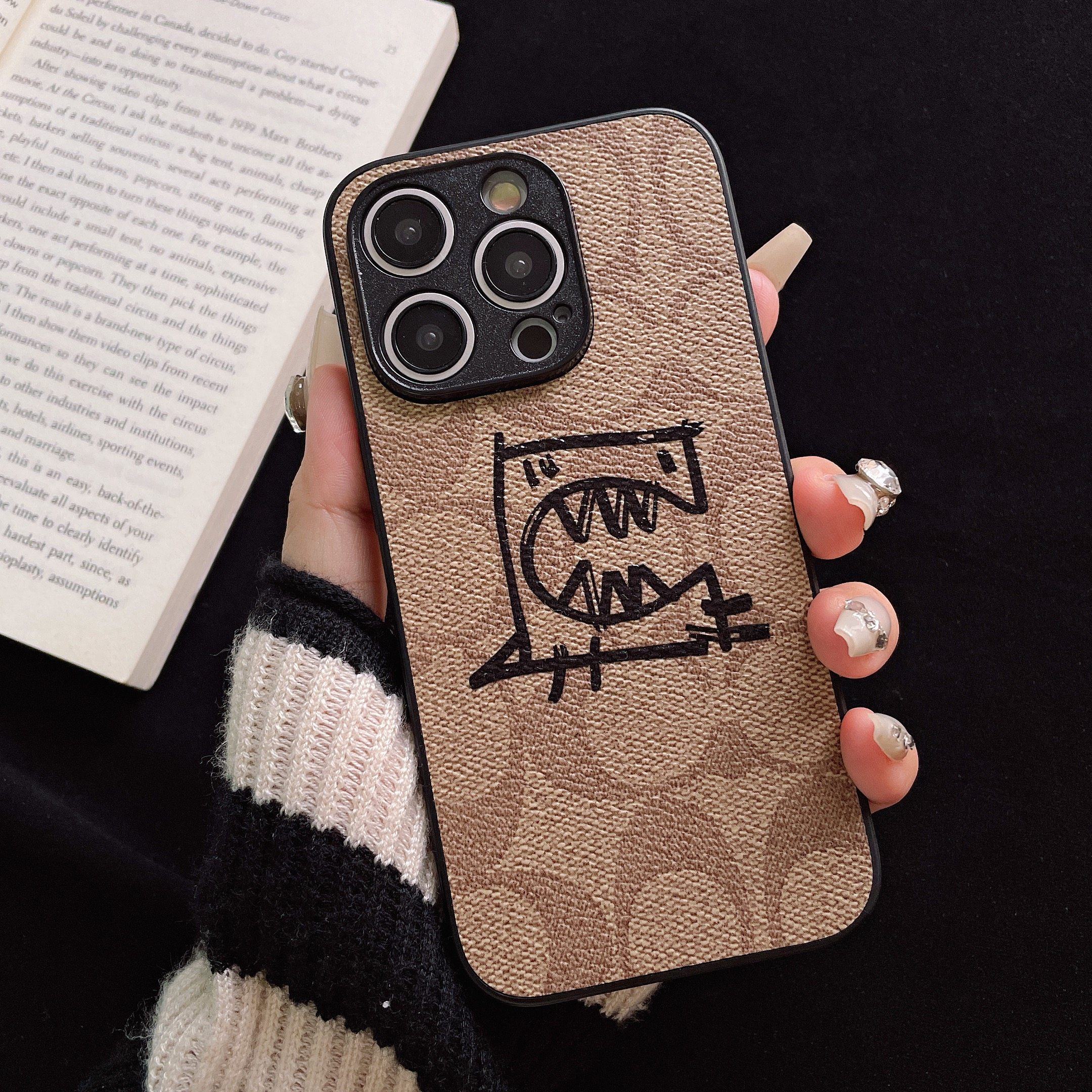 创意经典潮大牌小怪兽老花适用苹果15promax手机壳iPhone14情侣13pro男女款12皮质11全包防摔高级感奢华软边