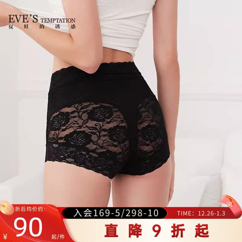 夏娃的诱惑高腰蕾丝内裤女本命年红收腹提臀纯棉档平角裤超薄无痕