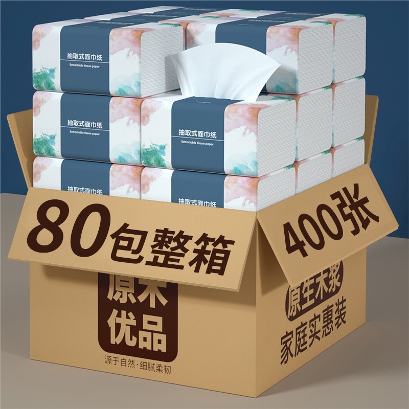 400张80包餐巾纸400大包纸巾抽纸家用实惠装整箱装面巾纸擦手纸抽