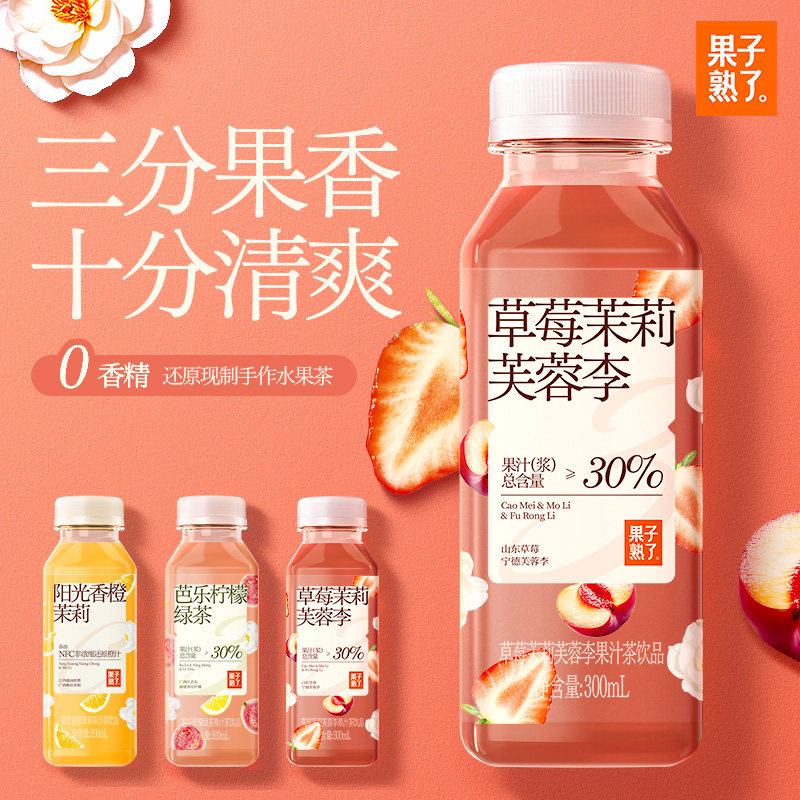 果子熟了草莓果汁茶阳光香橙茉莉味300ml芭乐柠檬临期饮料饮品