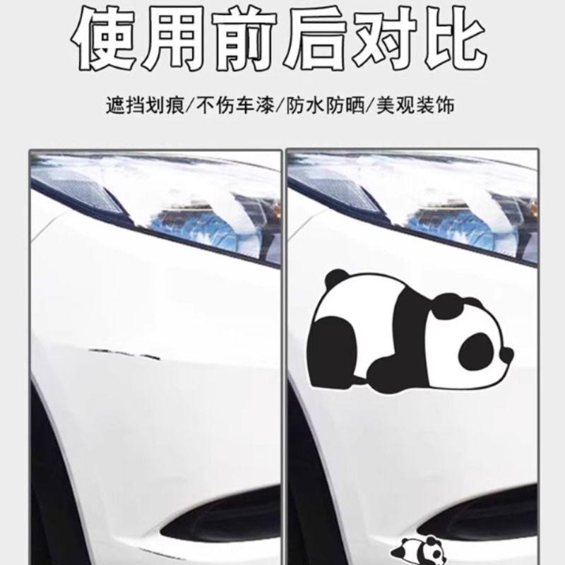 汽车划痕遮挡遮盖车贴装饰个性防水晒卡通可爱大熊猫车身创意贴纸