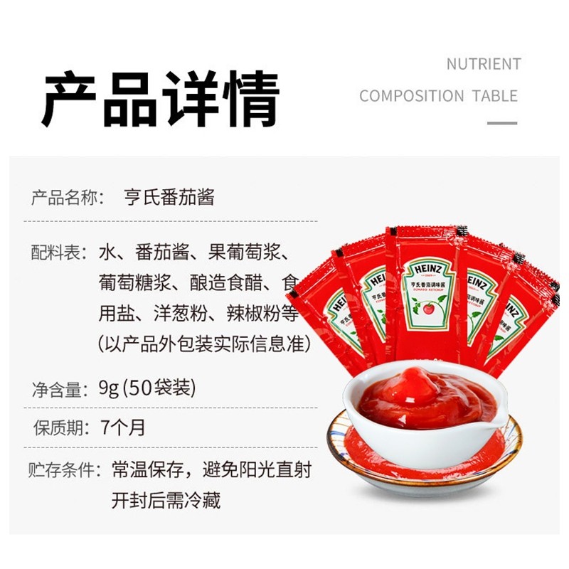 亨氏番茄酱小包装蕃茄酱9g*50袋沙拉酱家用儿童薯条番茄沙司