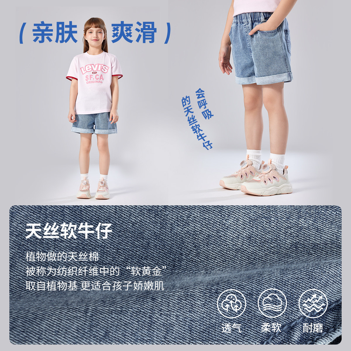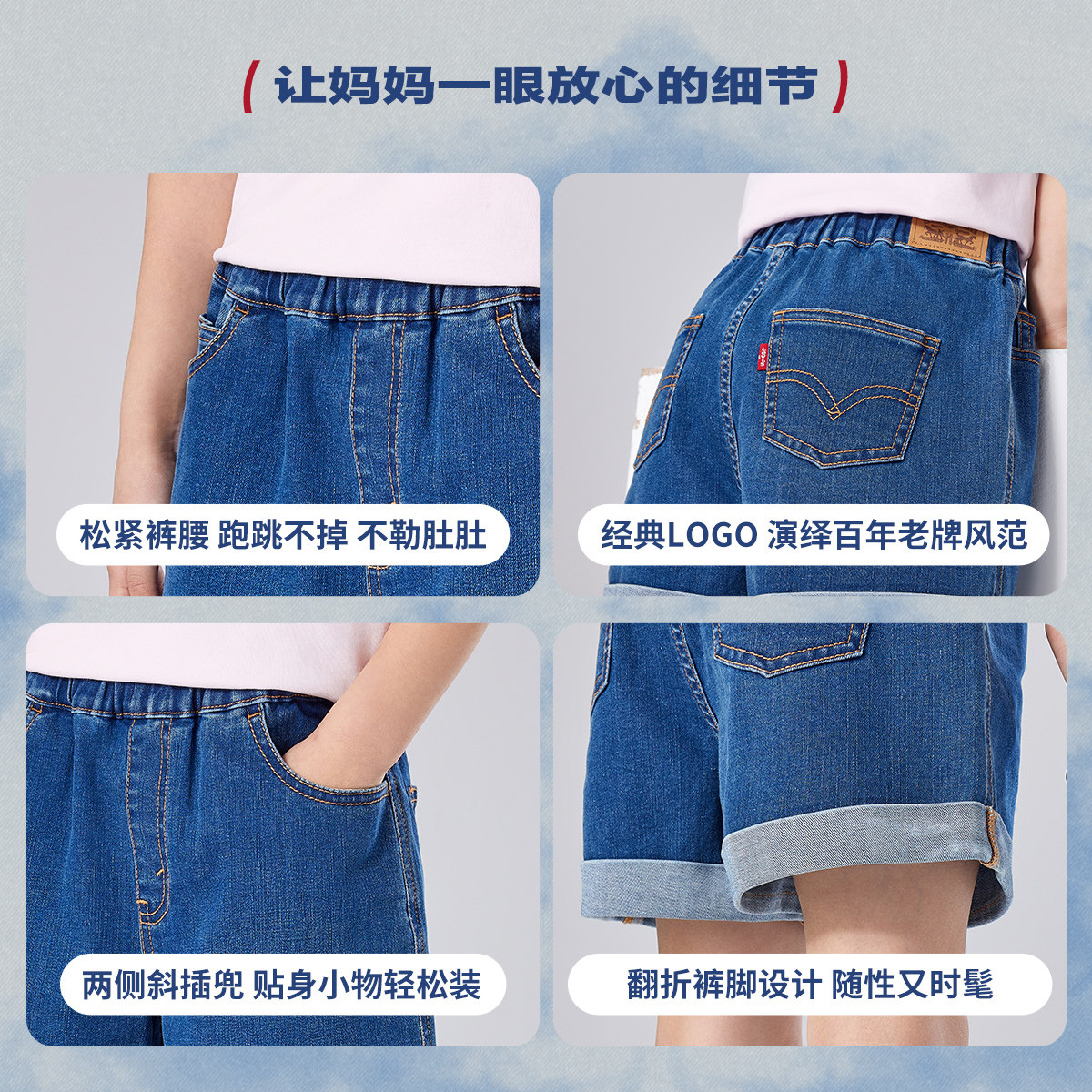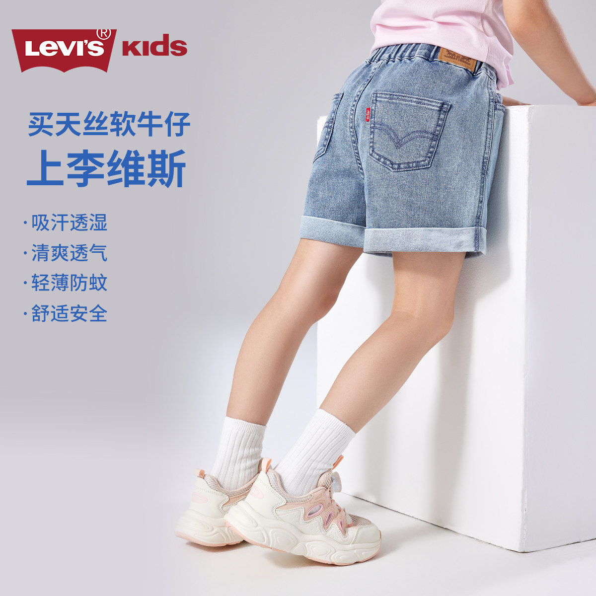 Levi's李维斯女童裤子儿童牛仔短裤2025夏季新款童装薄款休闲裤潮