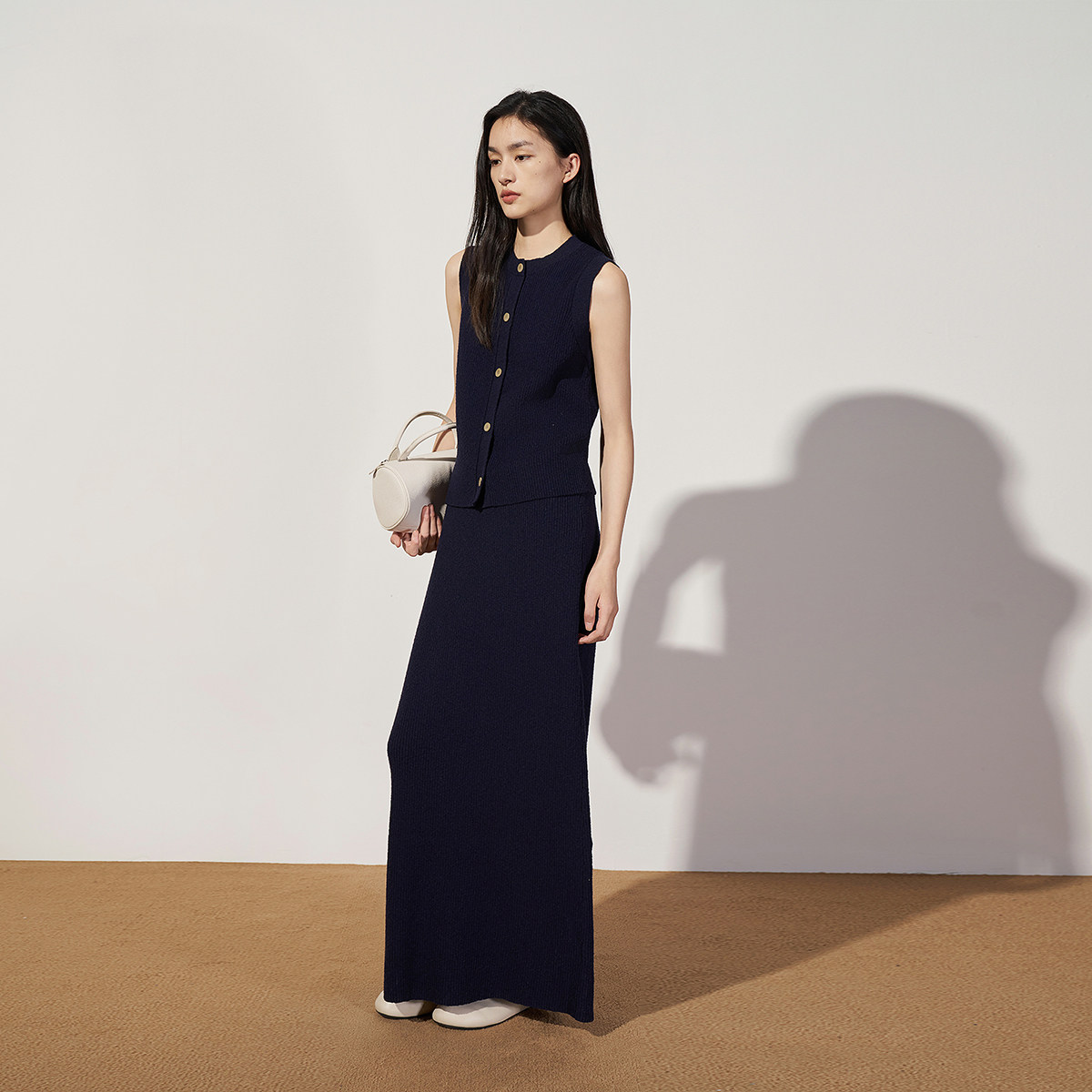 OCHIRLY欧时力 小香风坑条针织半身裙中长款直筒裙春夏
