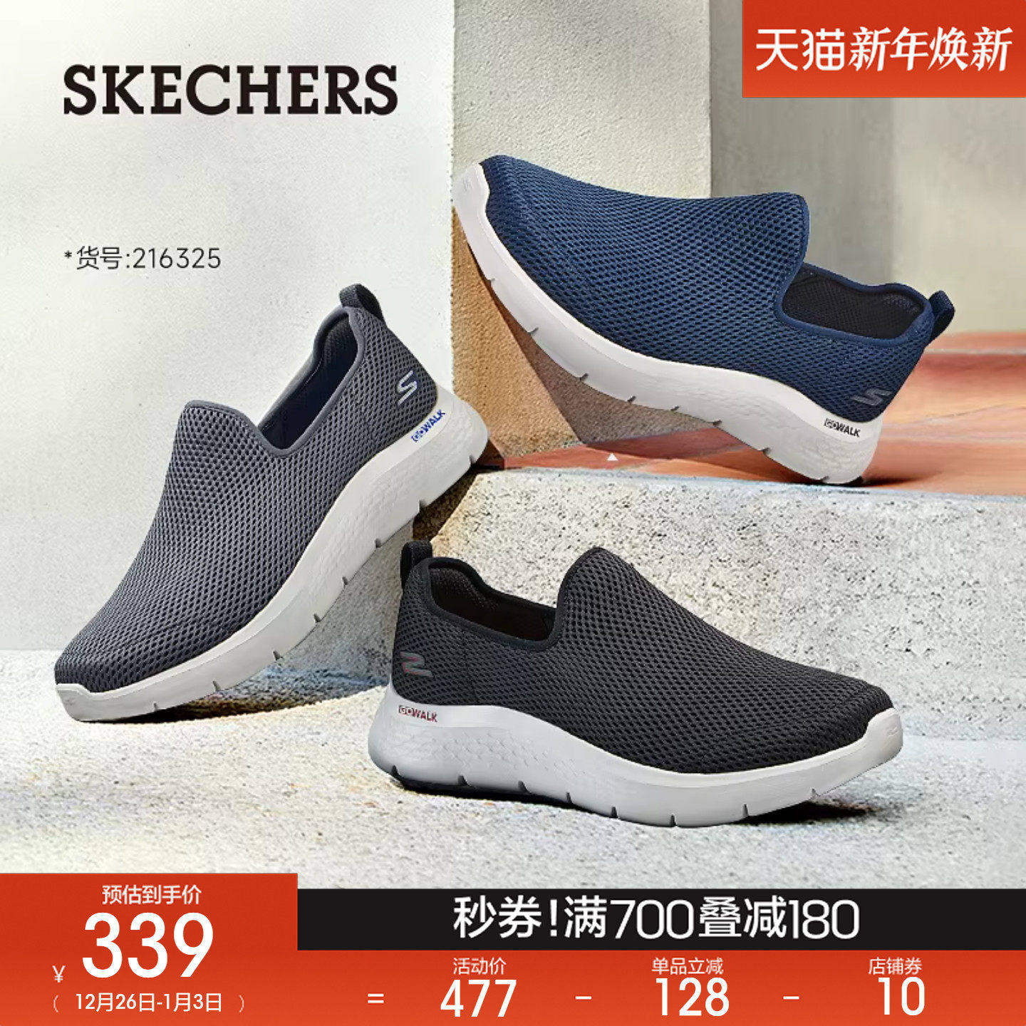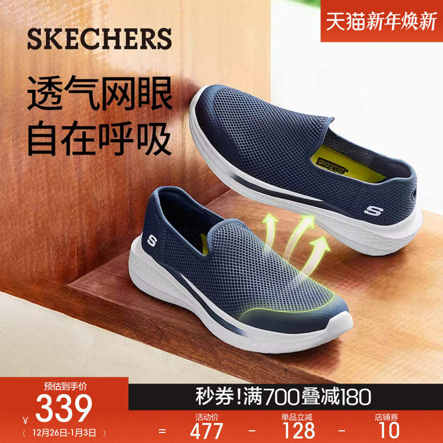斯凯奇夏季男健步鞋一脚蹬网面透气运动休闲鞋轻便舒适回弹大网孔