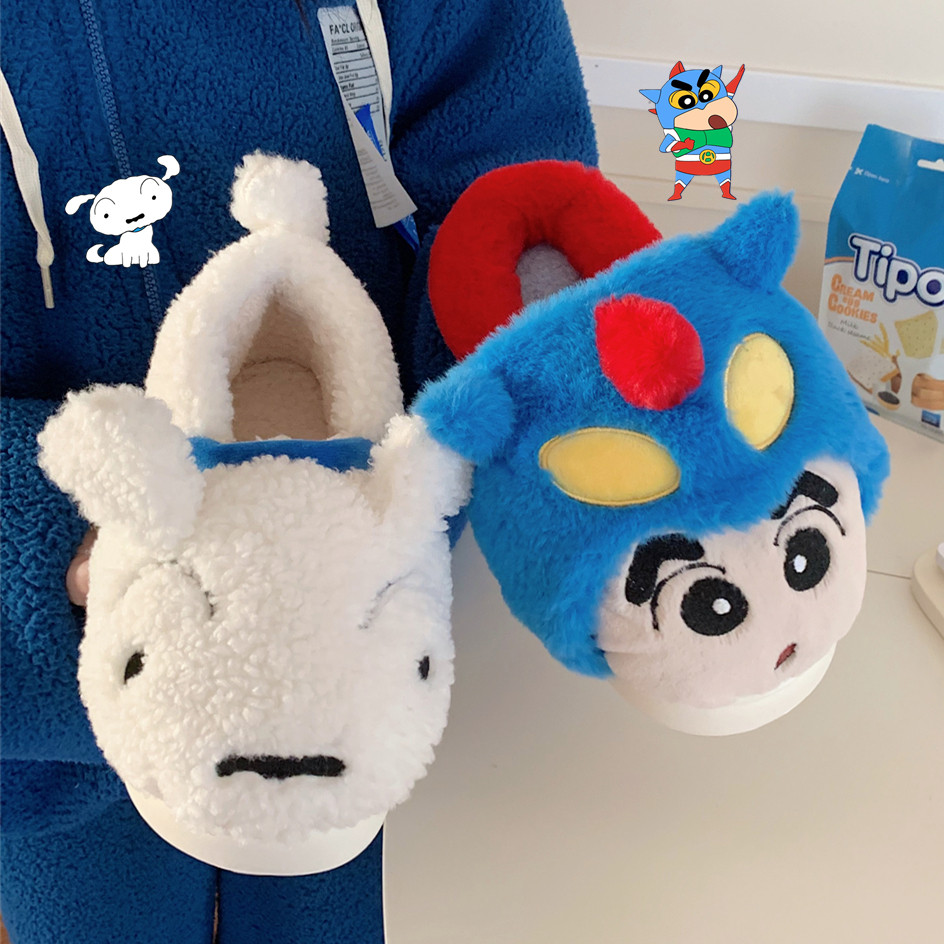 细细条 动感超人棉拖鞋男女可爱蜡笔小新情侣保暖防滑毛毛鞋冬季