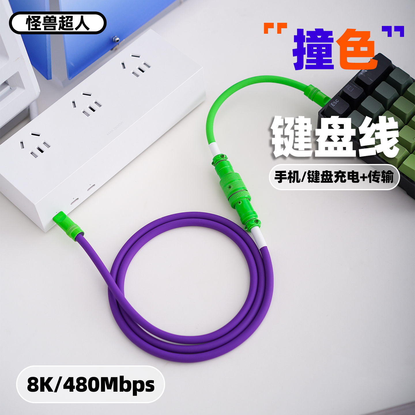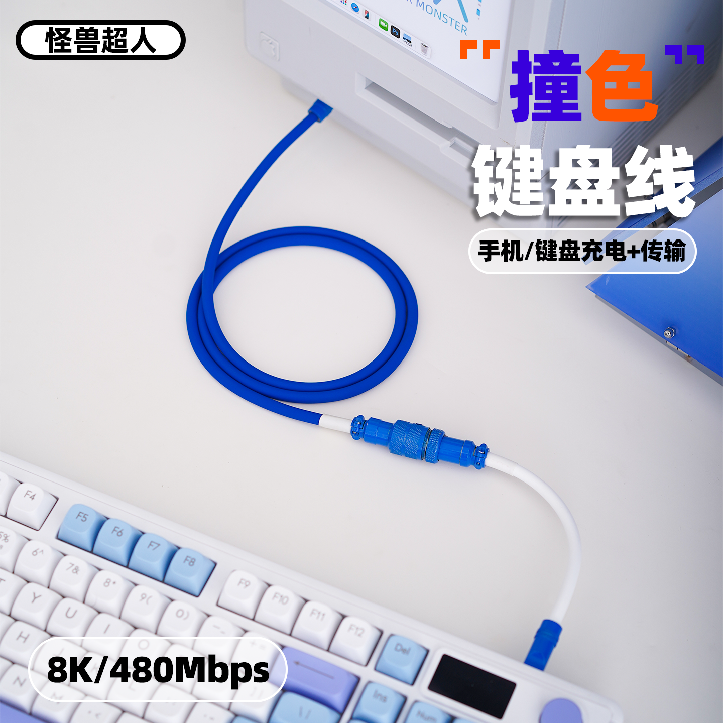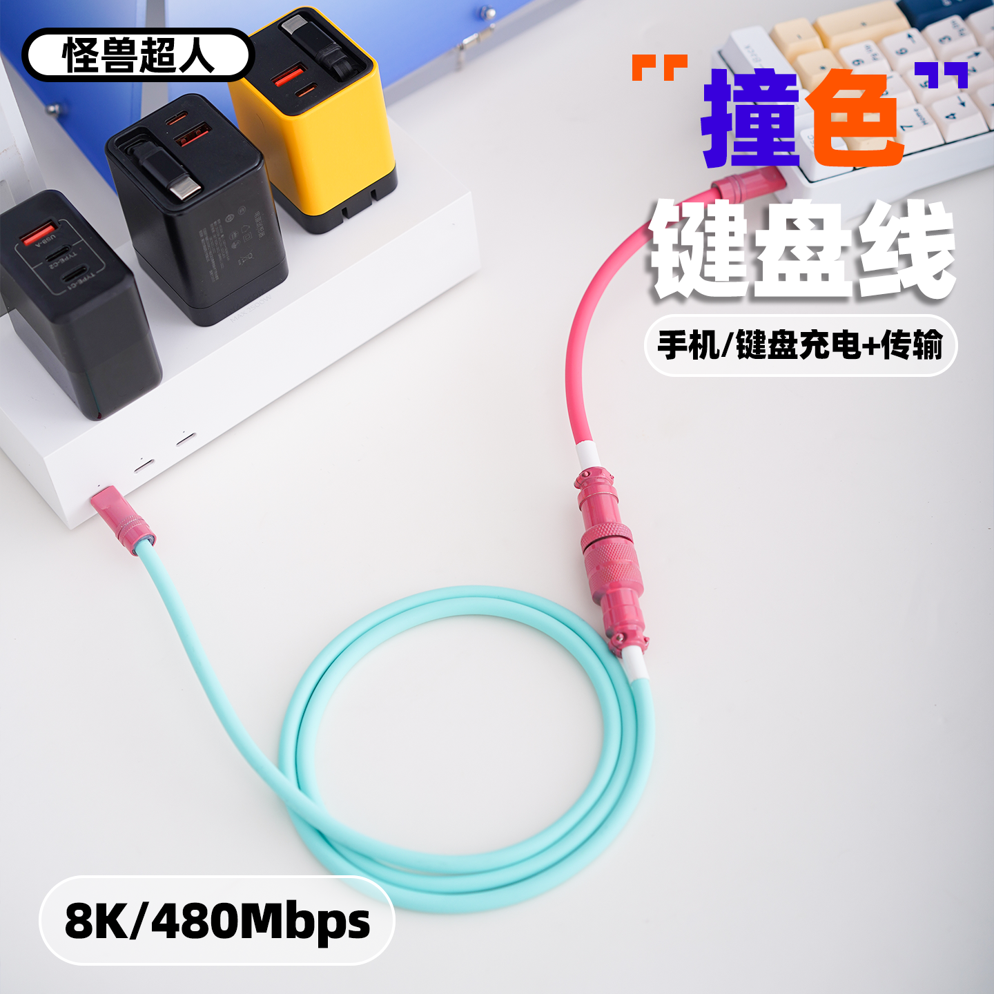 怪兽超人 航空键盘数据线8K适用苹果iPhone16promax15系列华为小米240W快充拼色液态硅胶加长鼠标手机充电线